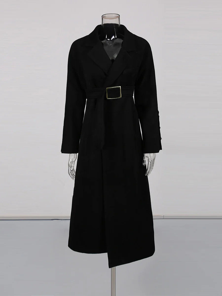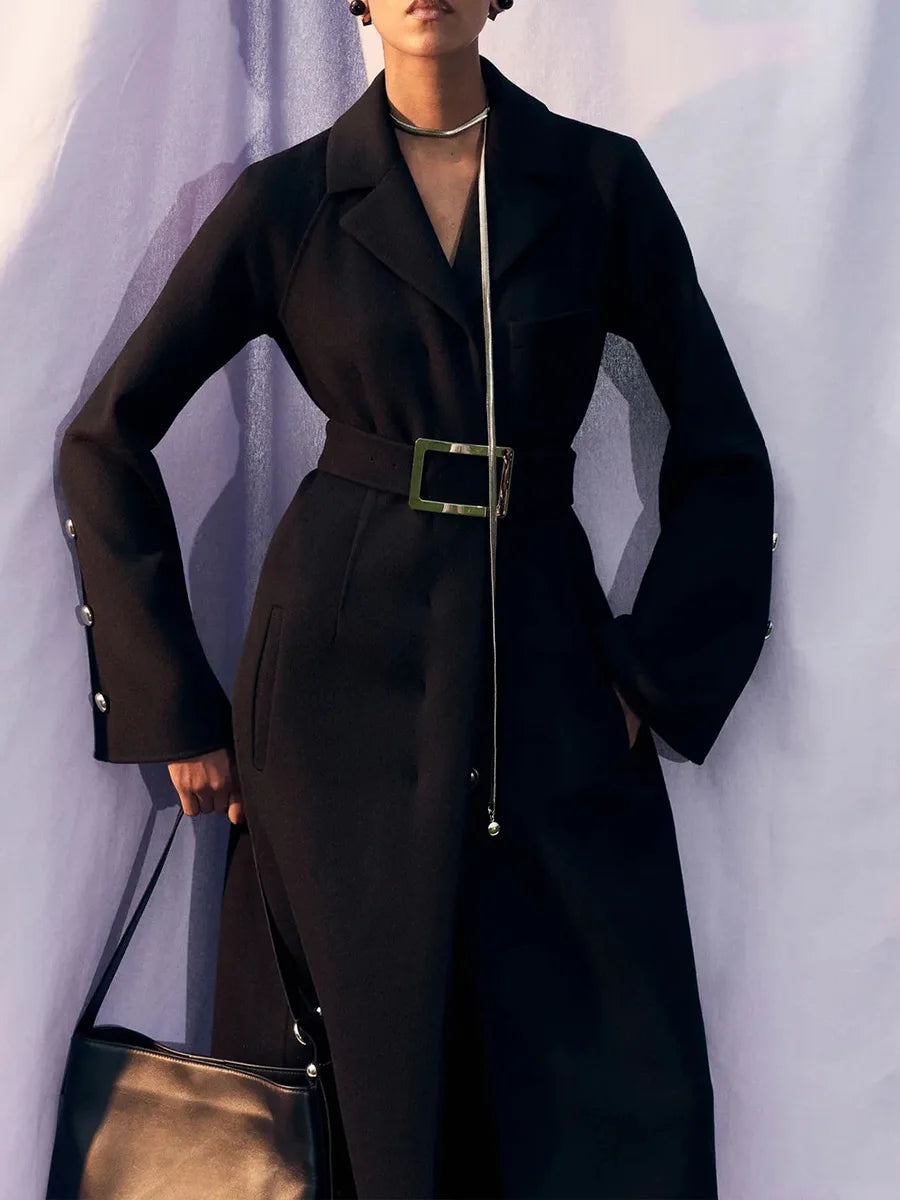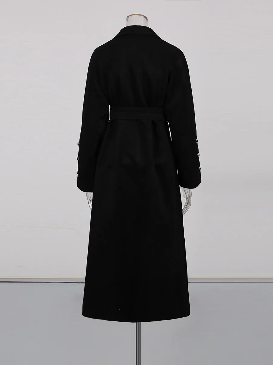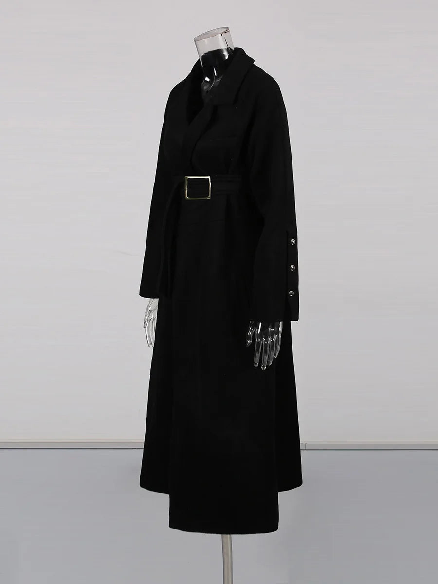 Crafted from a premium wool-blend fabric, it delivers both warmth and durability, making it an essential piece for autumn and winter layering. The mid-to-long length enhances coverage and style, while the adjustable belt allows you to wear it fitted or relaxed. Whether paired with chic office wear or evening ensembles, this coat embodies luxury and refined street style.