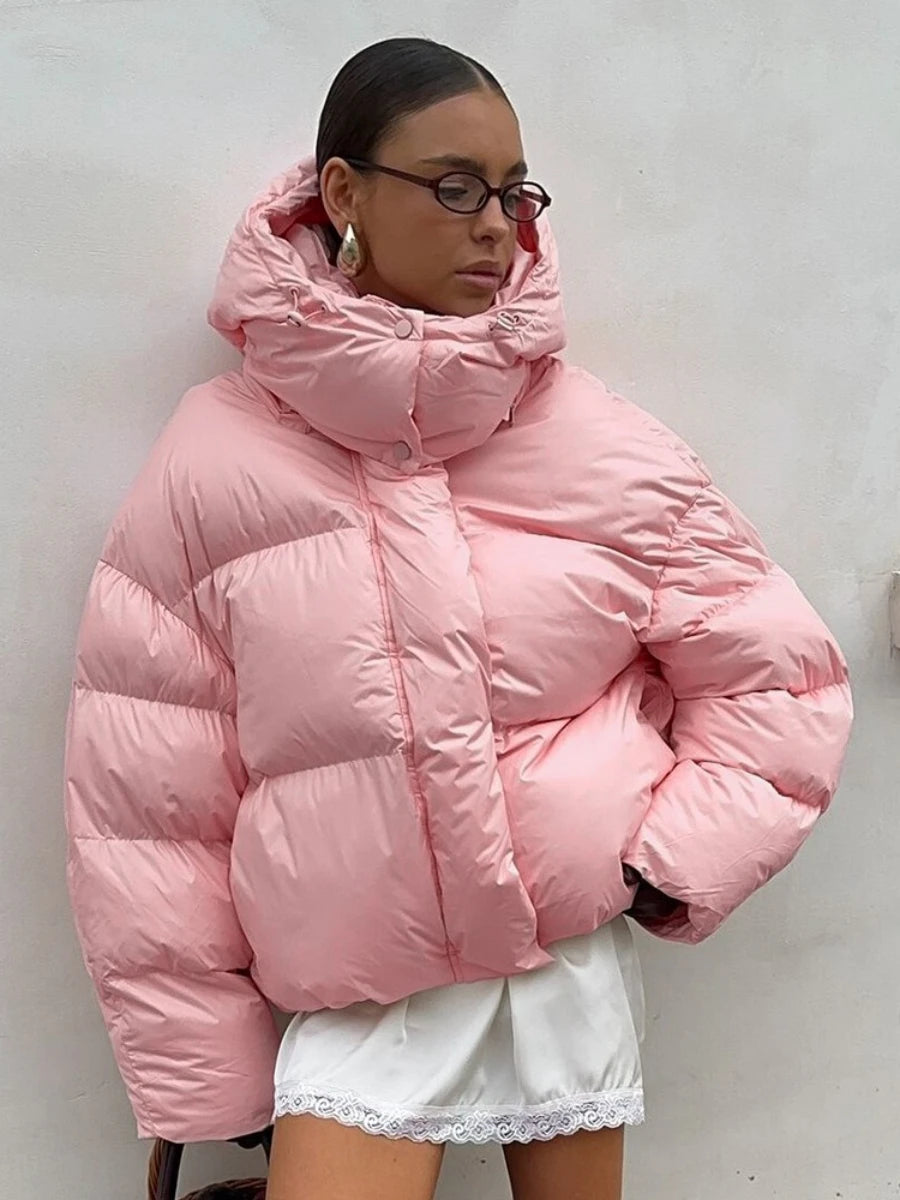 The oversized hood and high-neck collar offer extra protection from chilly winds, while the lightweight yet insulating padding ensures all-day warmth. Perfect for pairing with casual or chic winter ensembles, it’s your go-to piece for effortless cold-weather layering.