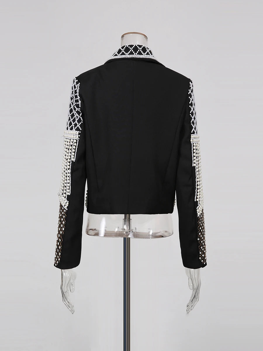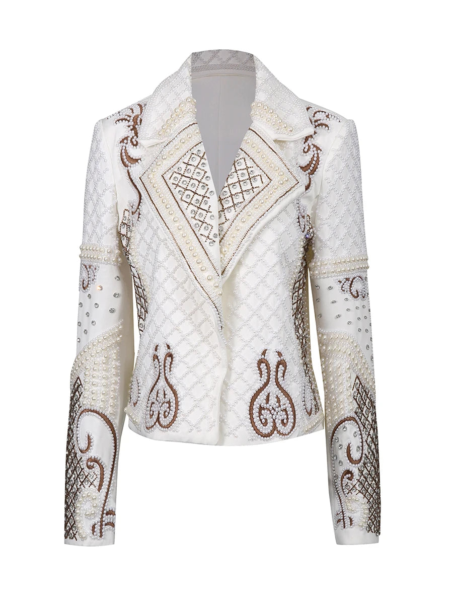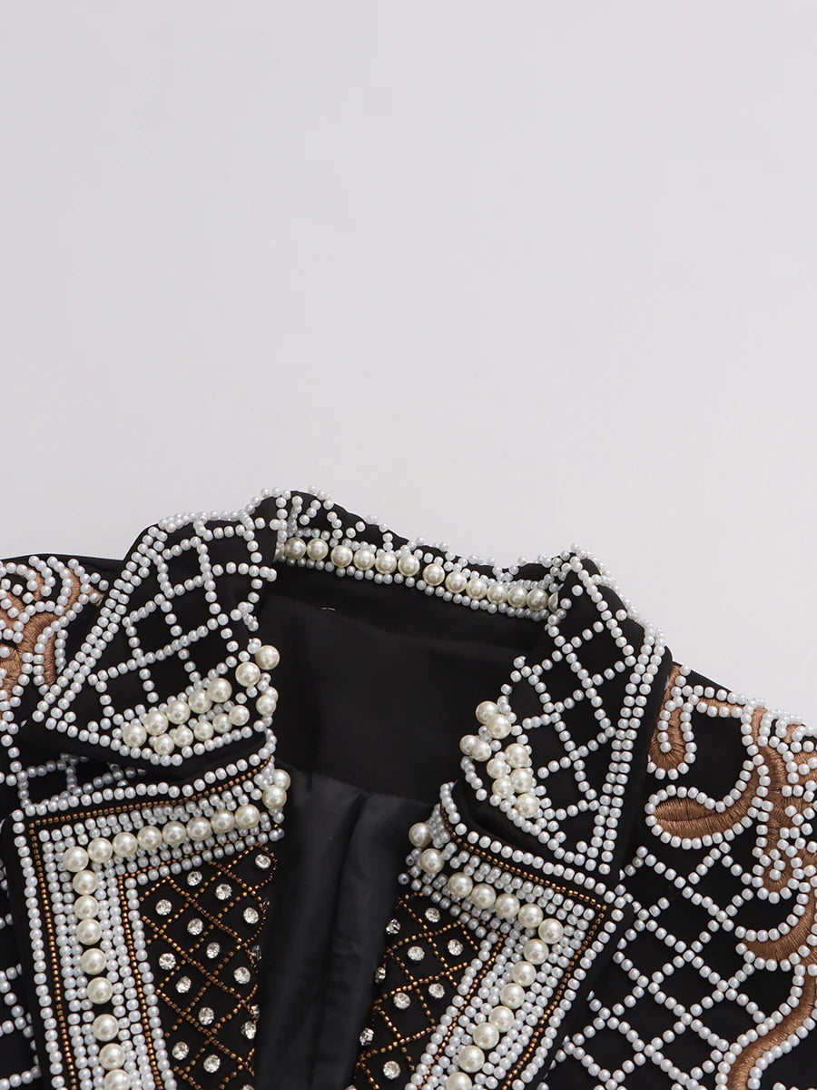 Trend4us Luxe Pearl-Embellished Embroidered Blazer
