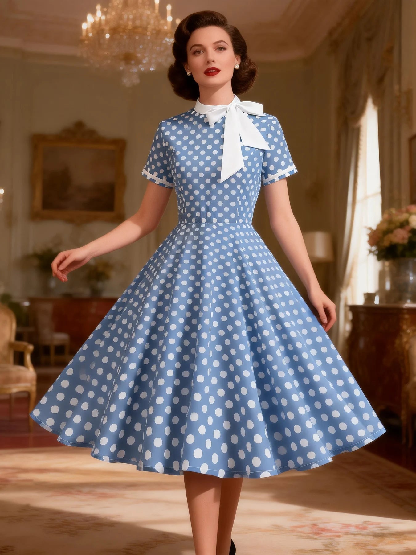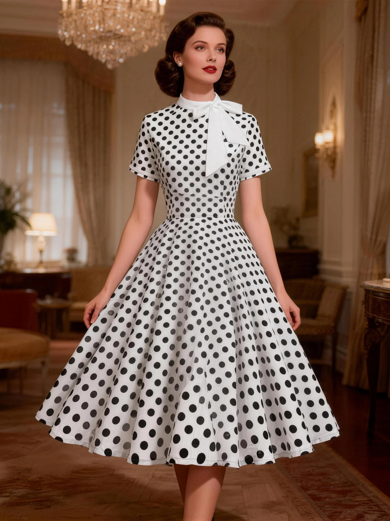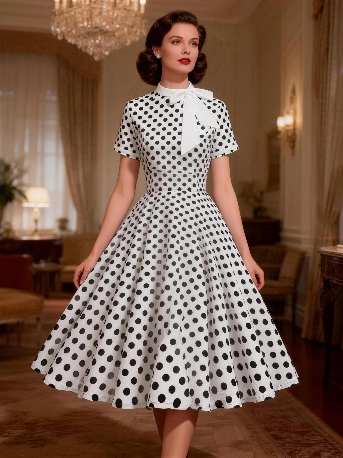 - Classic polka dot pattern with a vintage, retro 1950s aesthetic