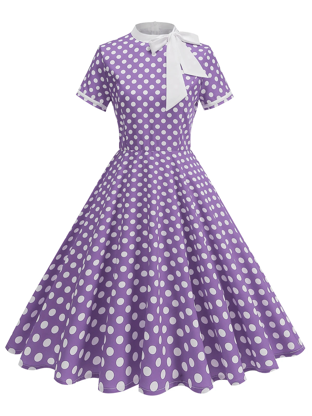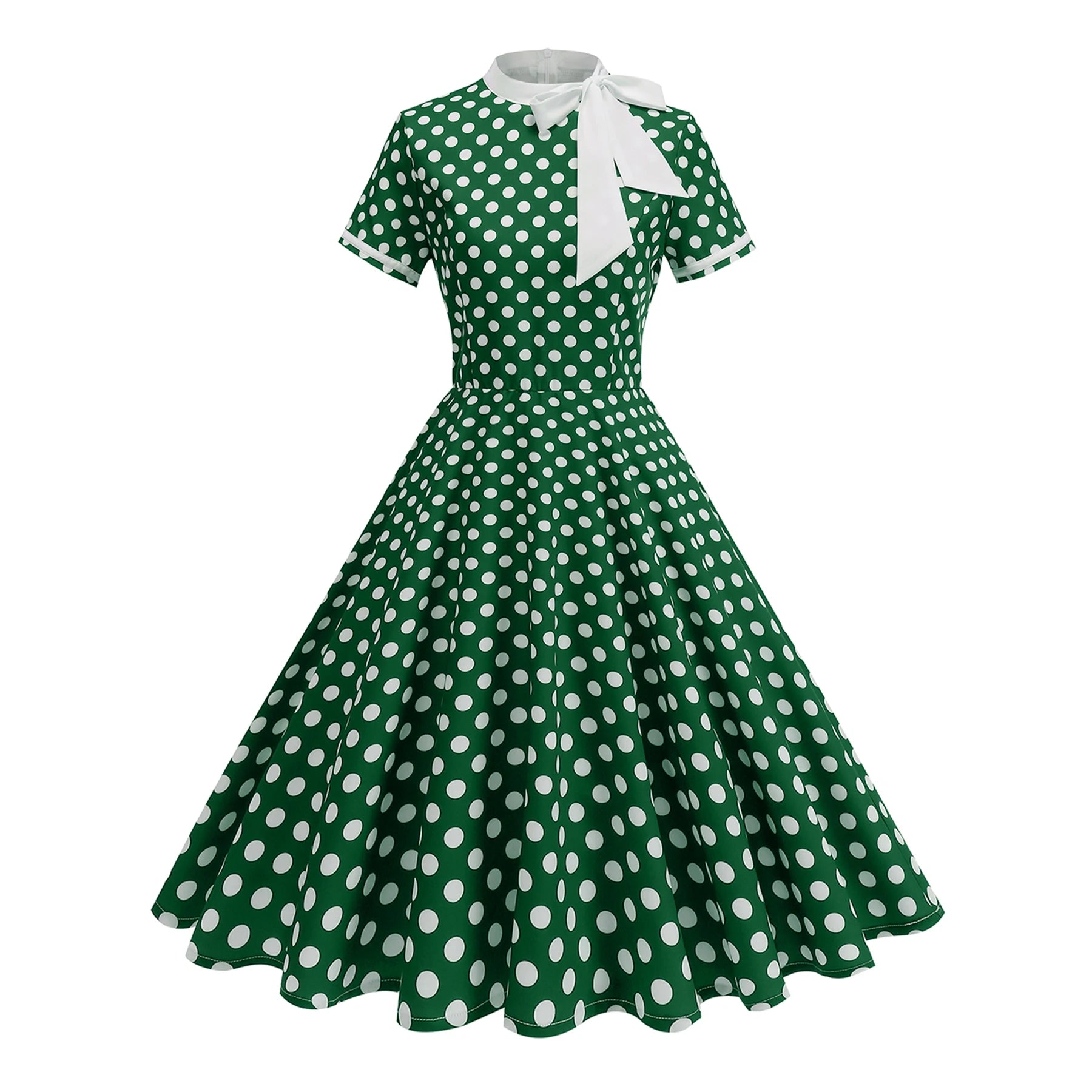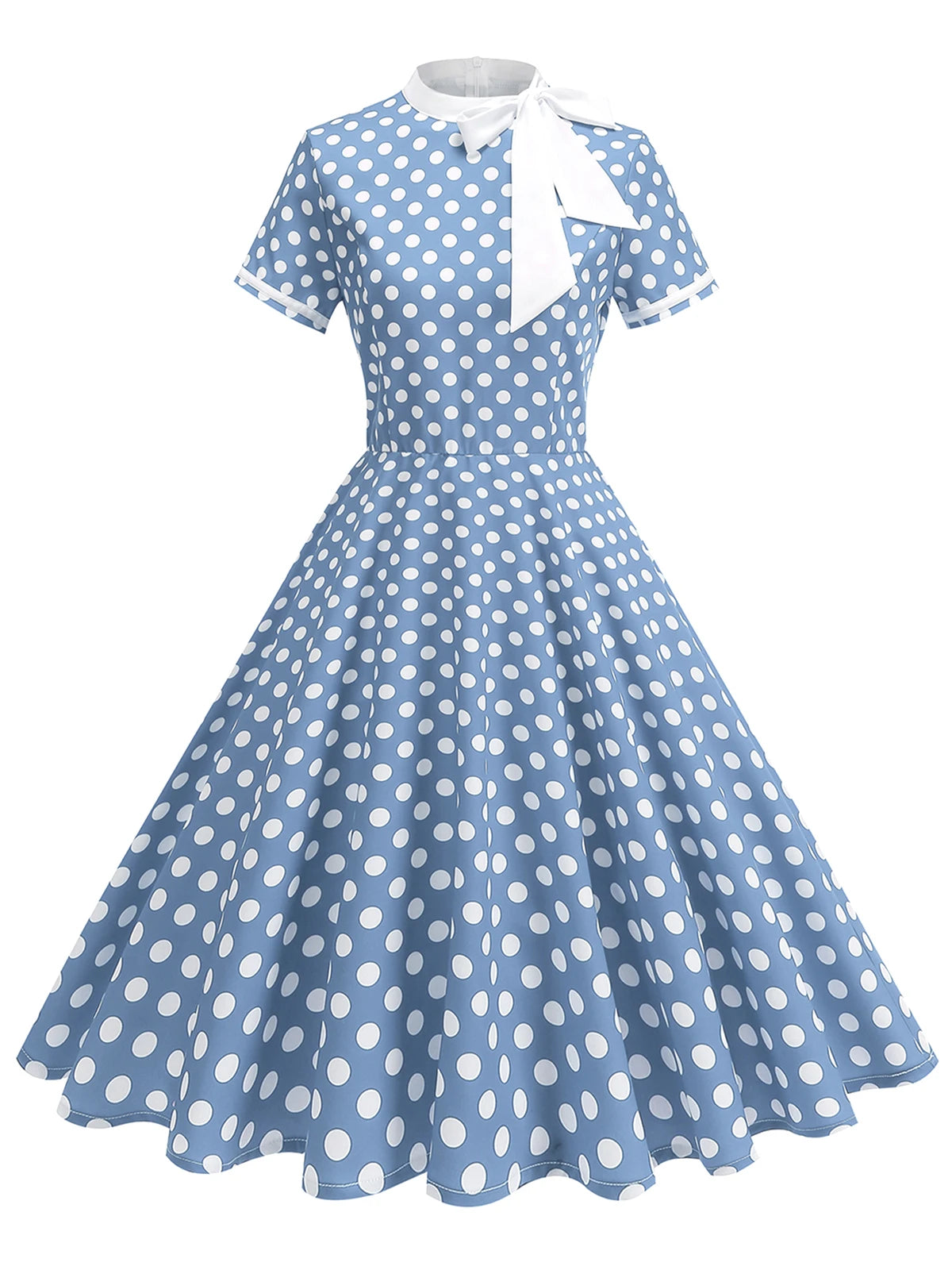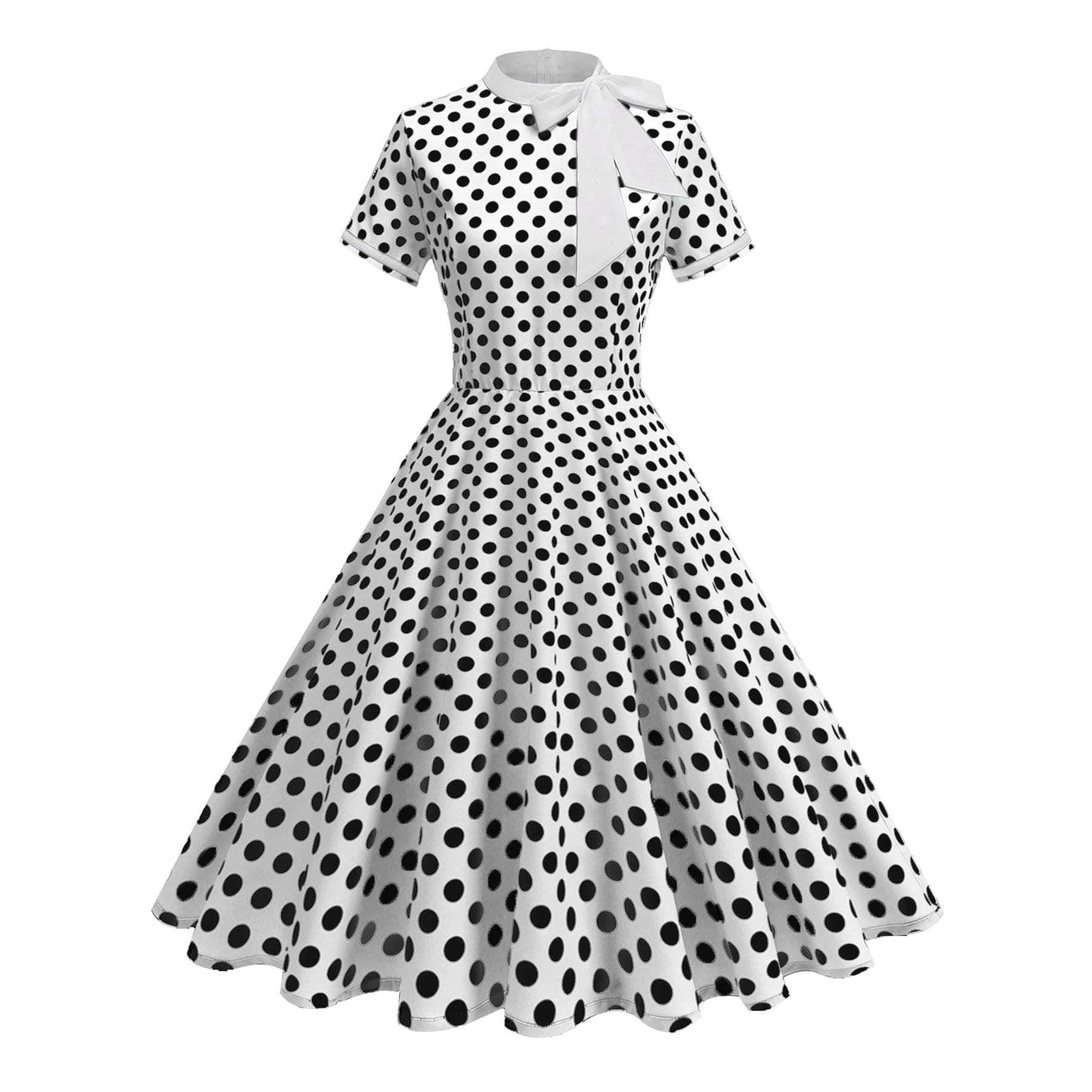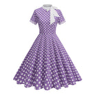 Dress up effortlessly in the Elegant Polka Dot Bow Tie Neck Fit & Flare Dress — a timeless 1950s-inspired silhouette that never goes out of style. The delicate bow tie neckline adds a refined, feminine touch, while the A-line cut and empire waistline create a beautifully flattering shape for every figure.
