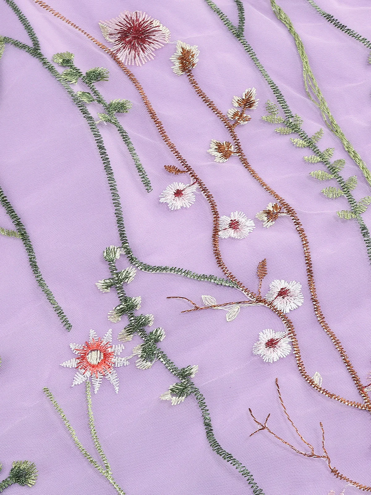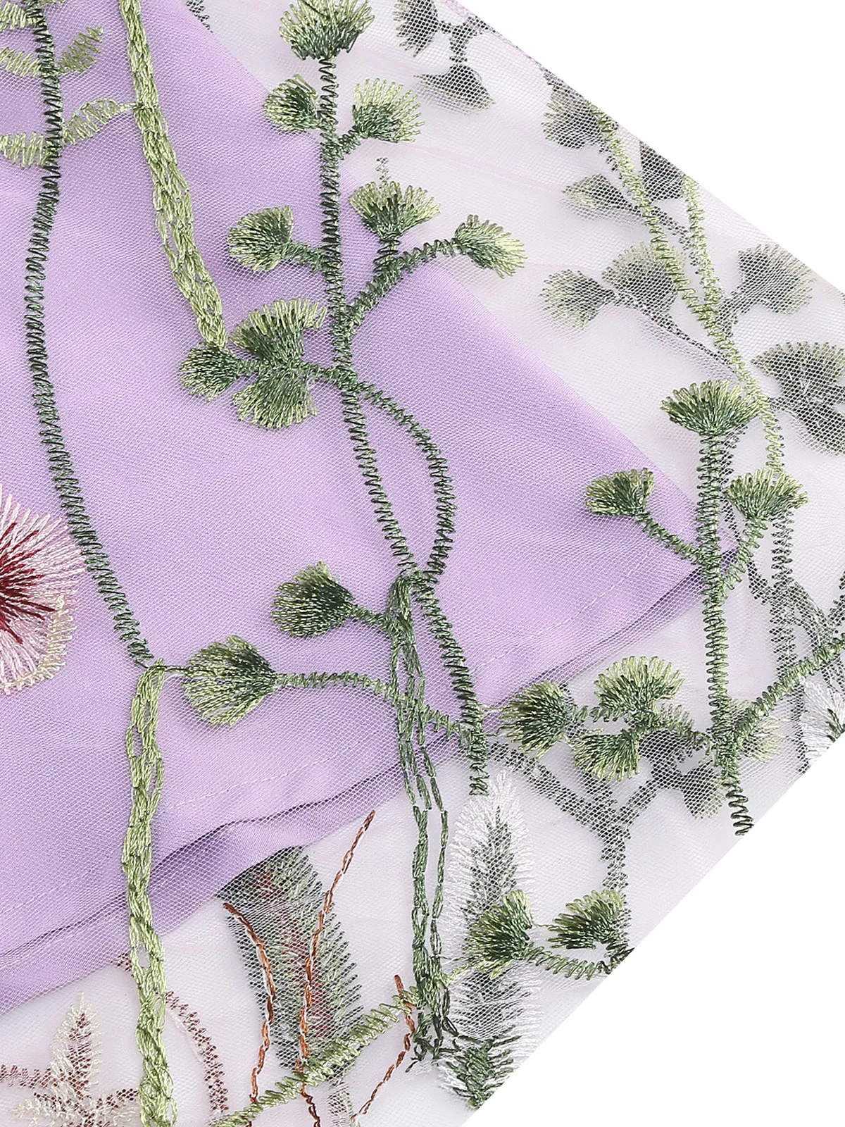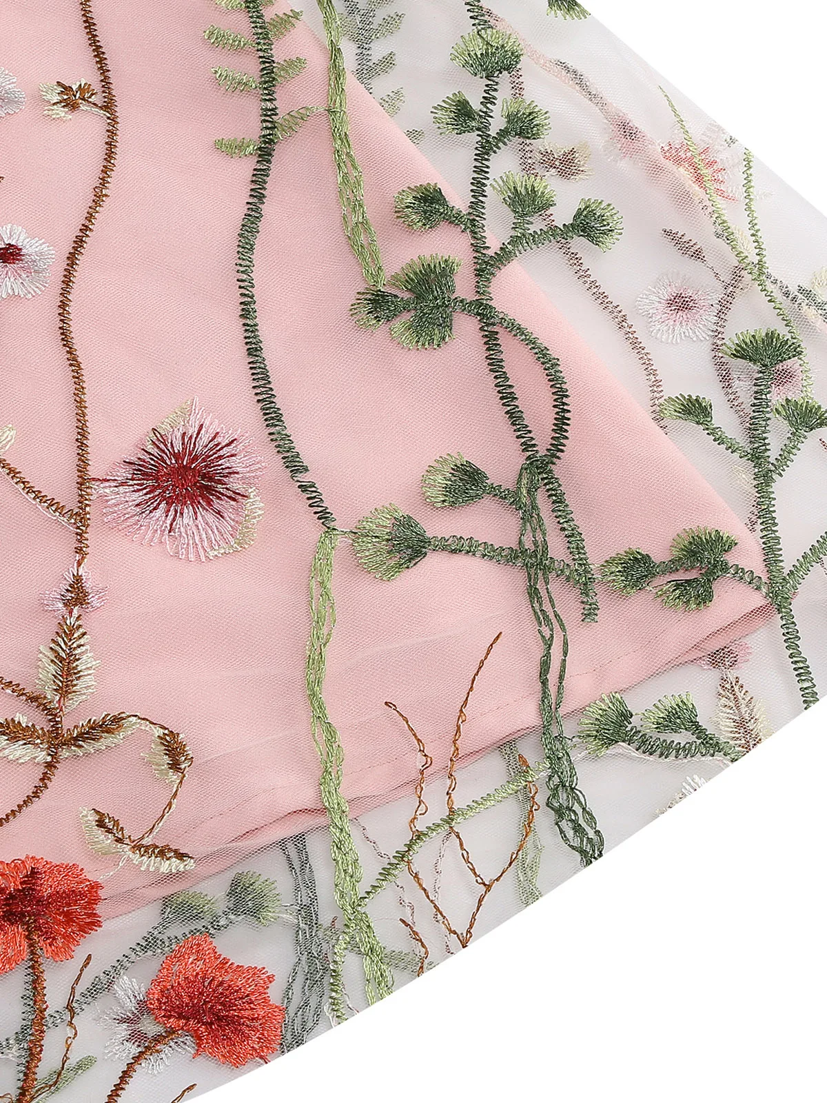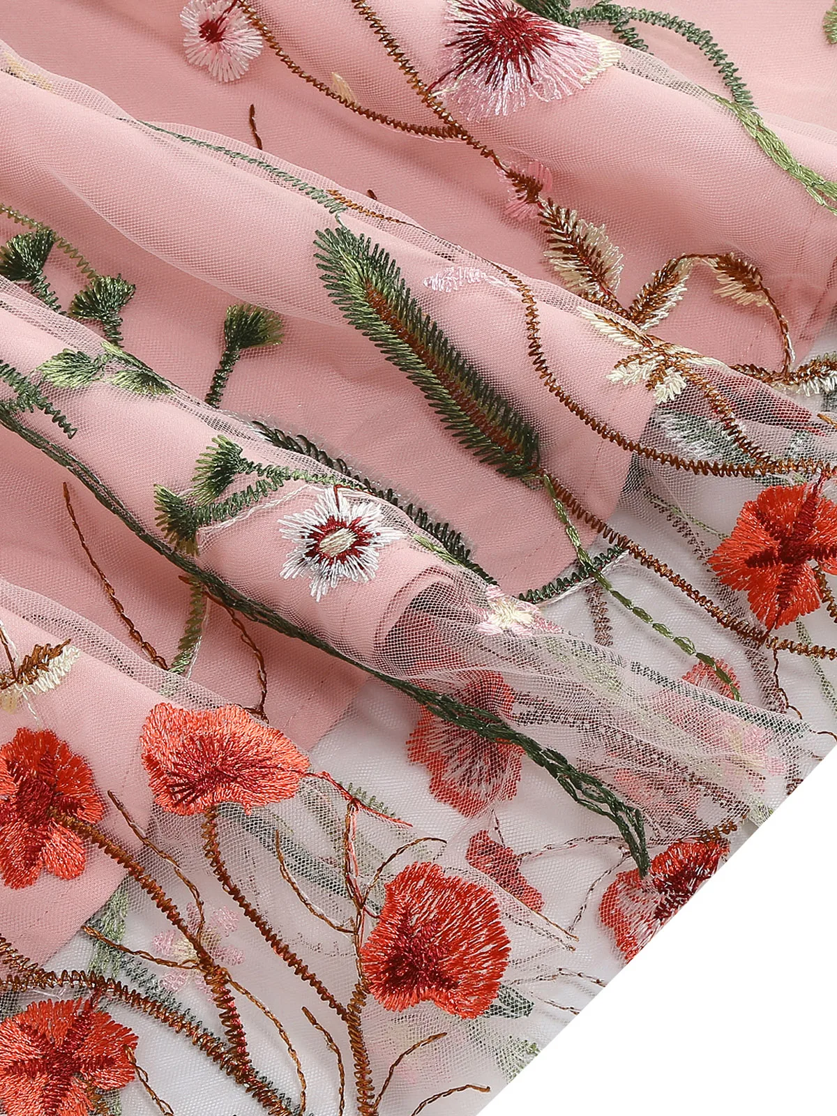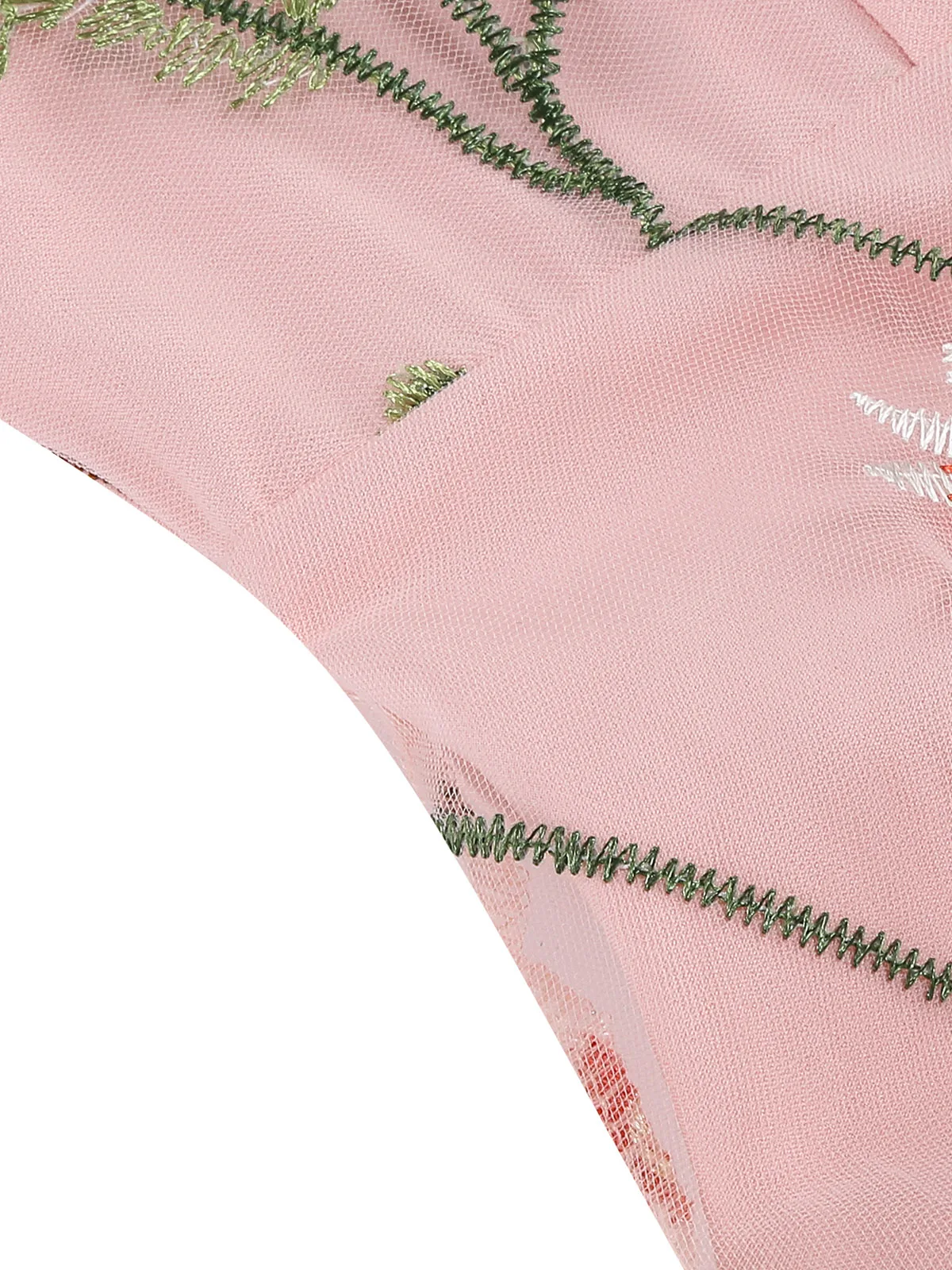 - Intricate floral embroidery on sheer mesh overlay — breathtakingly romantic