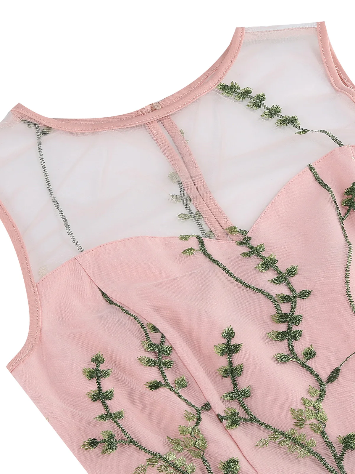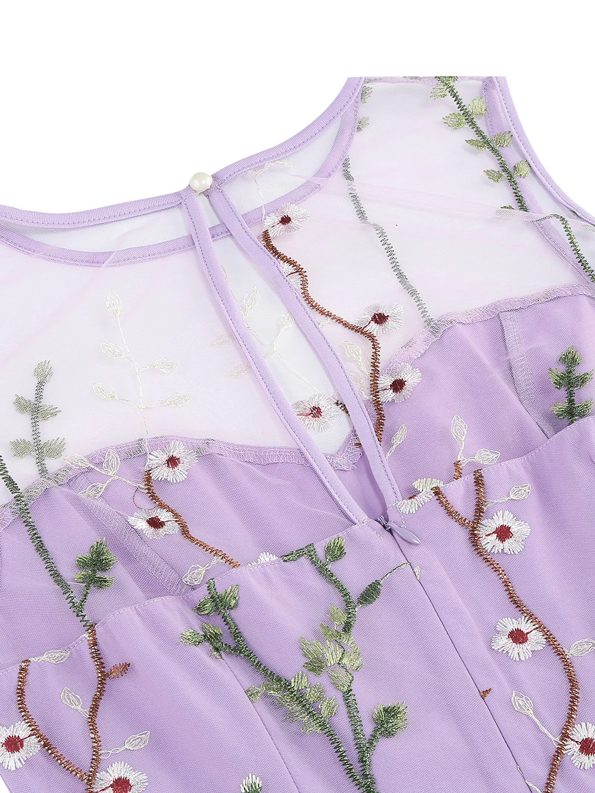 Details: Embroidery, Mesh, Keyhole