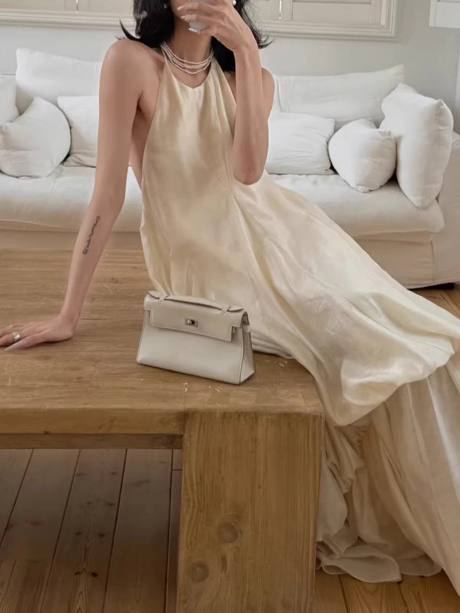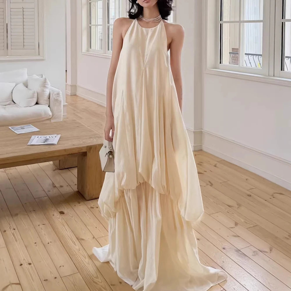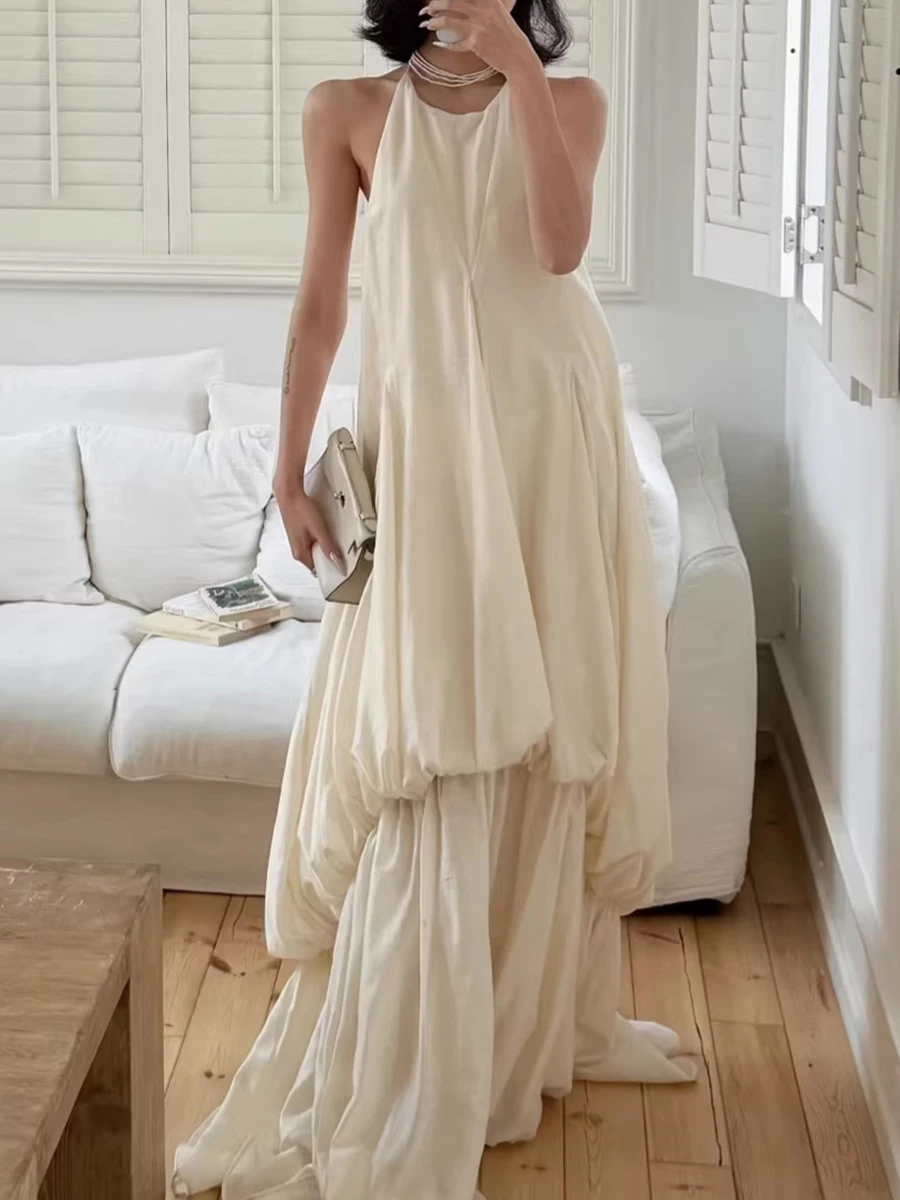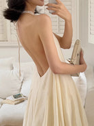 Trend4us Elegant Backless Halter Draped Maxi Dress