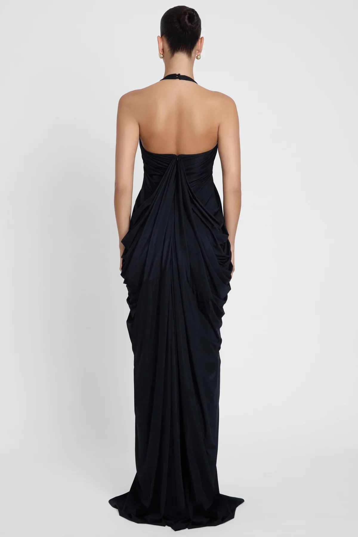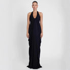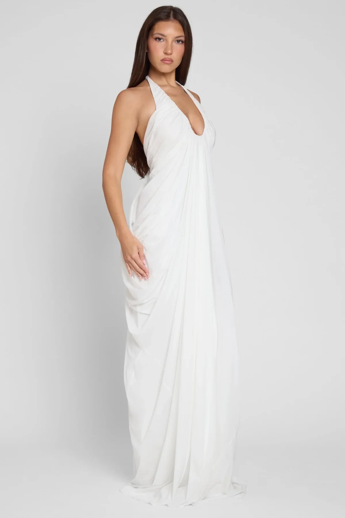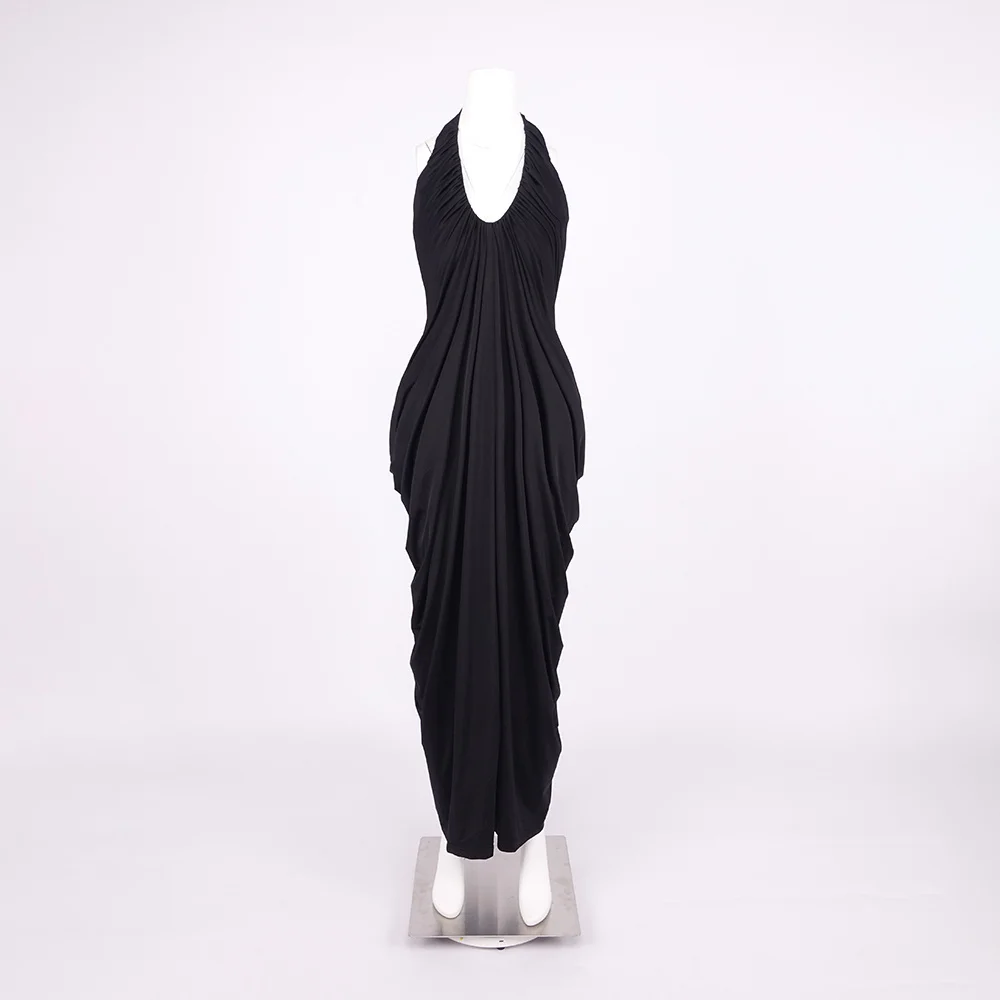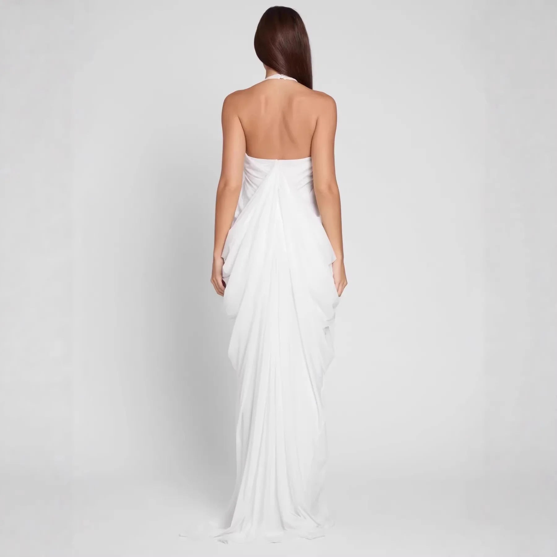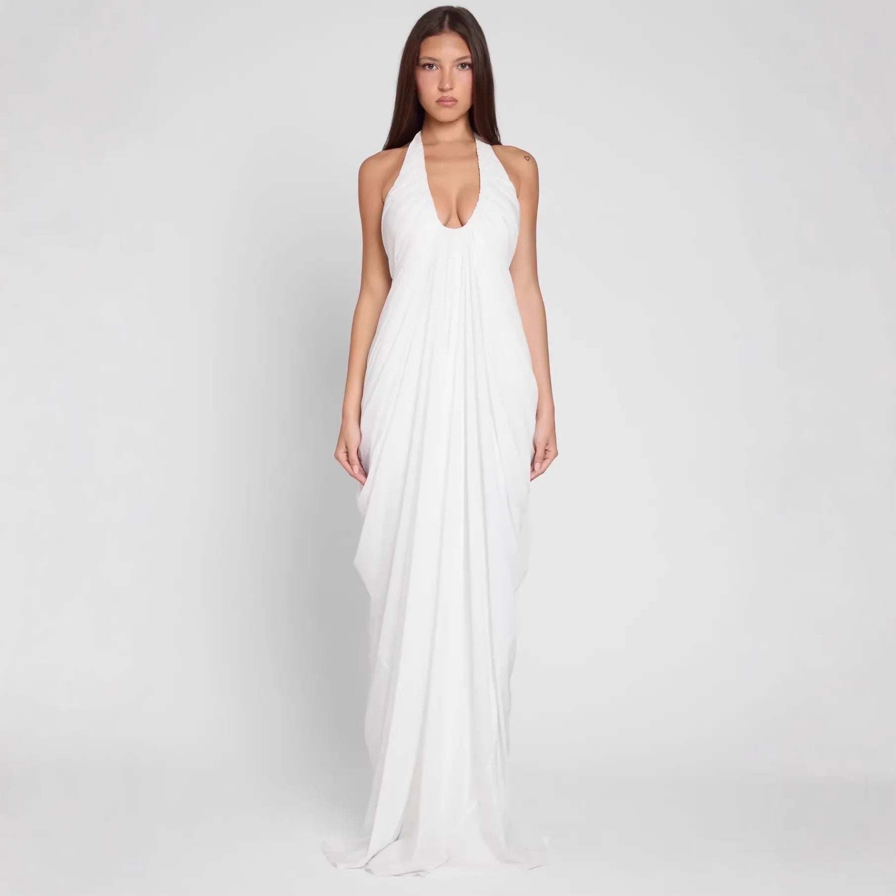 Trend4us Elegant Draped Halter Backless Maxi Dress