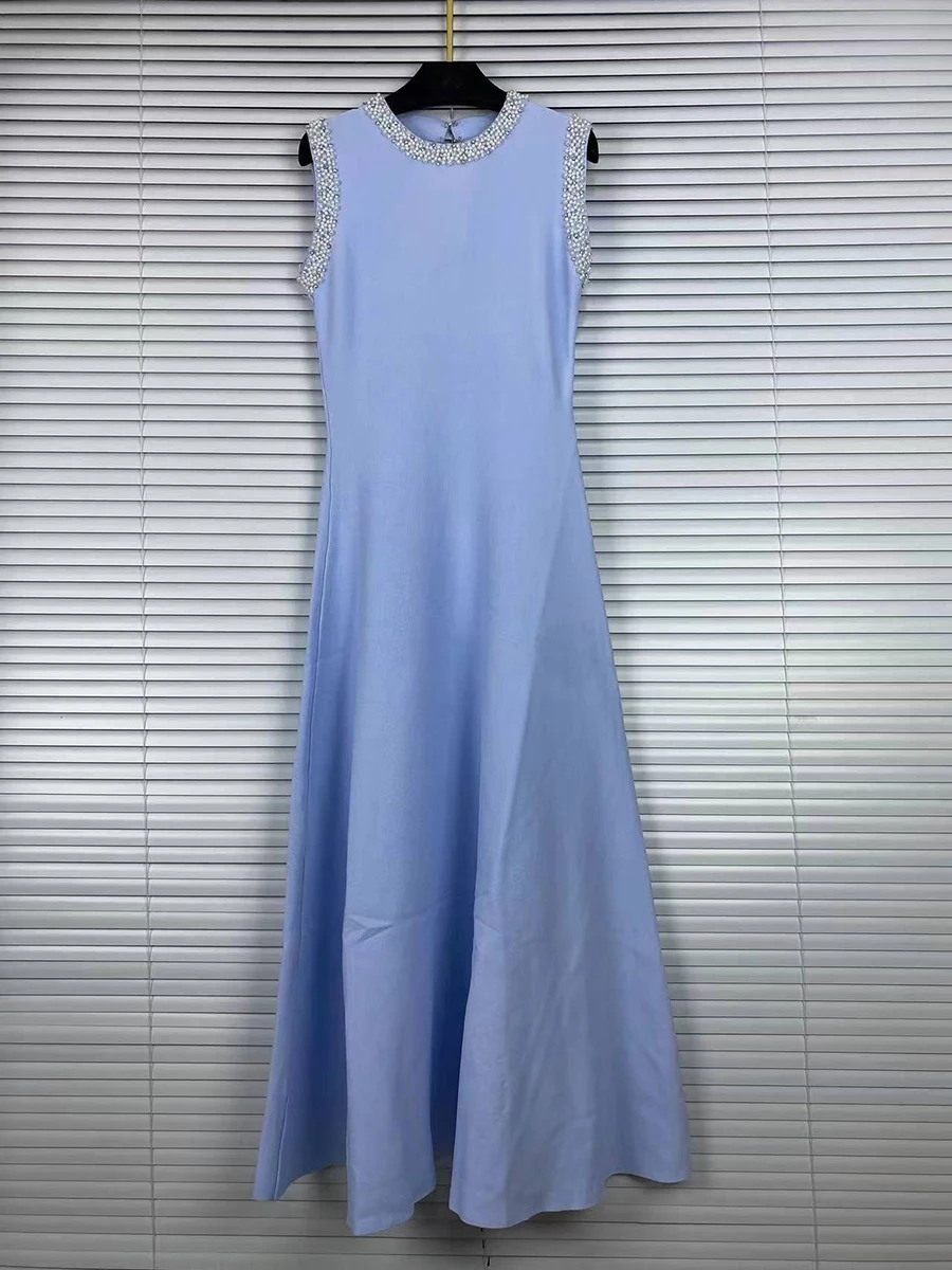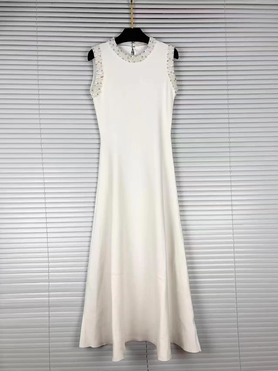 Where minimalism meets artisanal detail — this beaded flare midi dress is a quietly stunning piece that rewards a closer look. The A-line silhouette flows gracefully from an empire waistline, while embroidered flare beading adds a vintage-inspired, handcrafted dimension that elevates the clean, sleeveless design. The round neckline and slim fit create a polished, effortless silhouette that works from day to evening with equal ease. Crafted in a lightweight polyester synthetic fiber with a slight stretch for all-day comfort. Available in White, Black, Yellow, Blue, and Pink — five versatile shades to suit every mood and occasion.