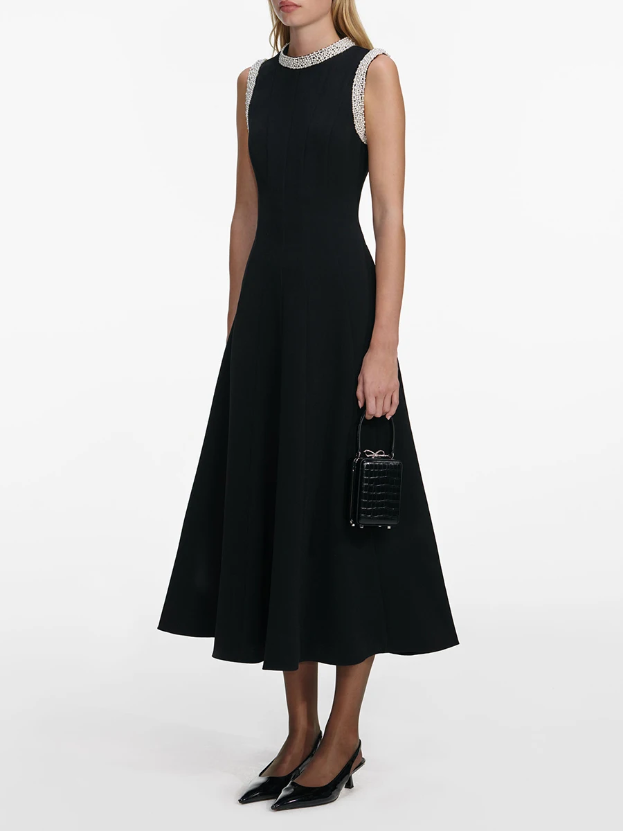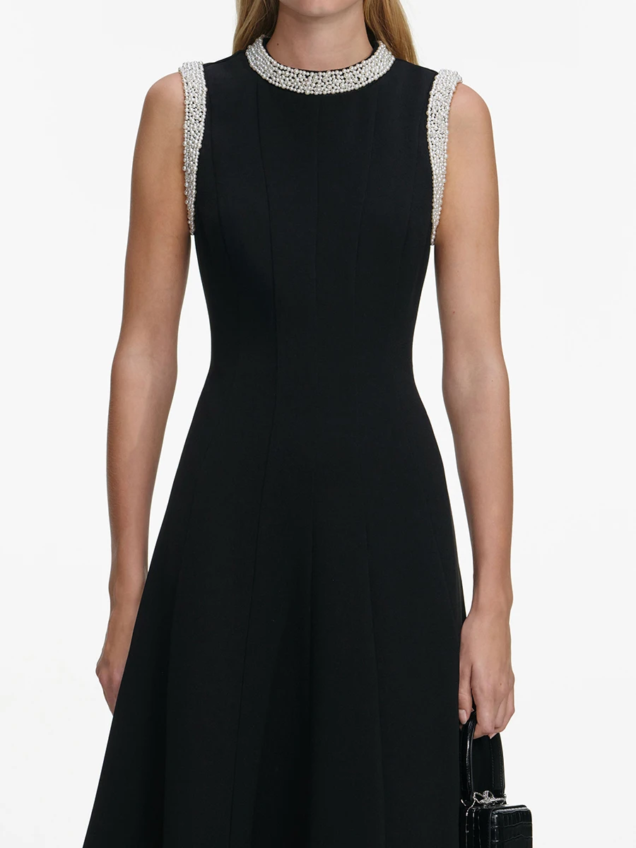 Trend4us Elegant Minimalist Beaded Flare Dress