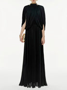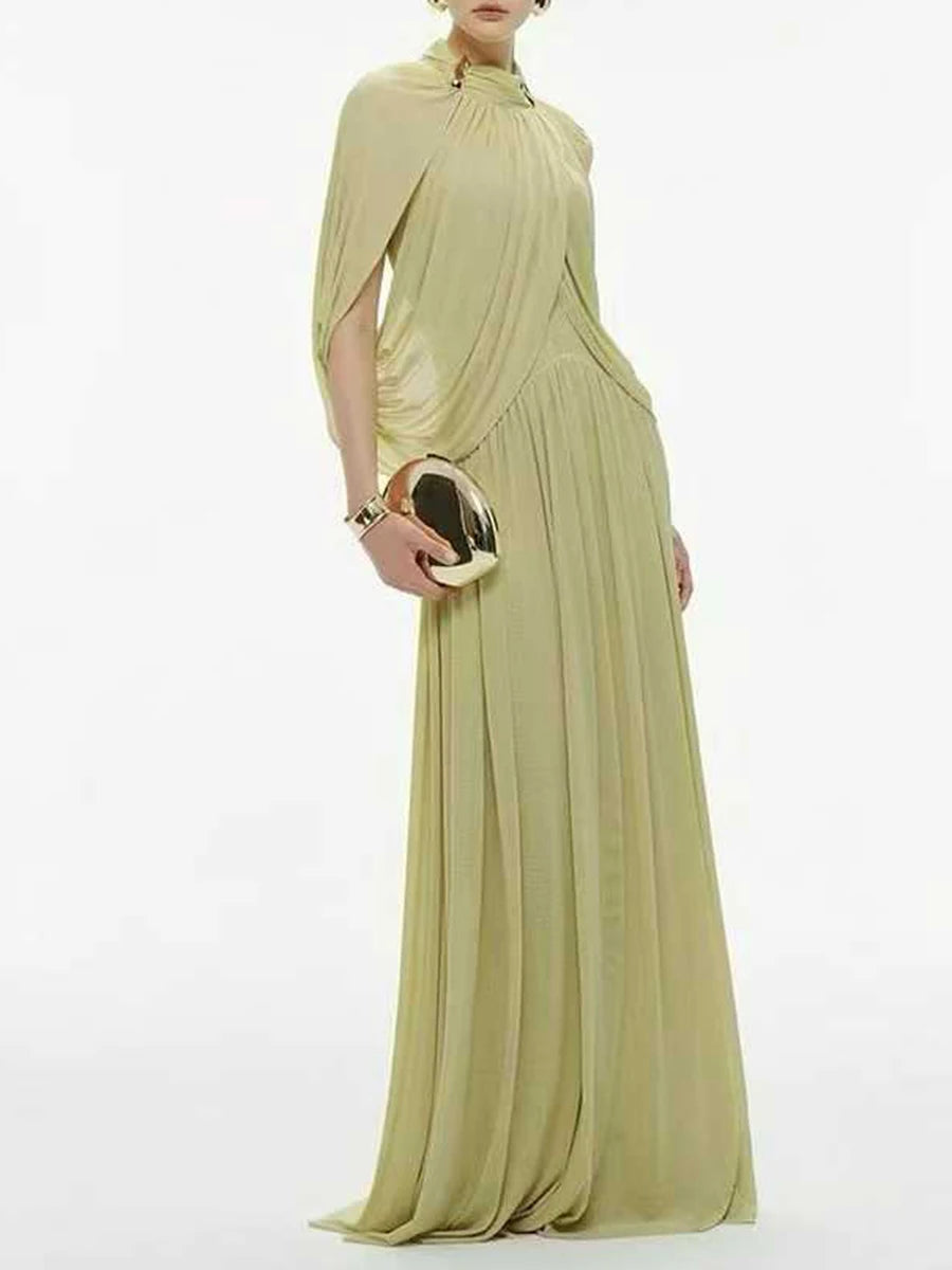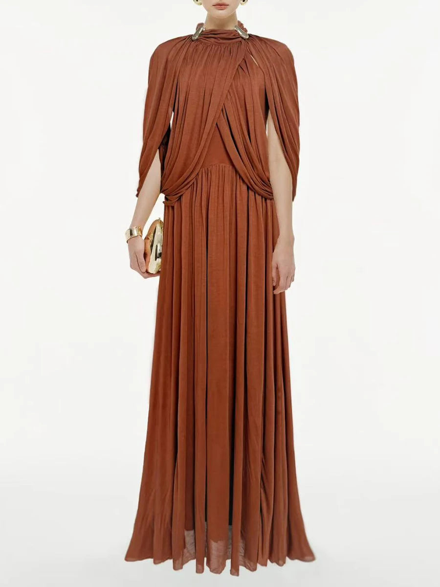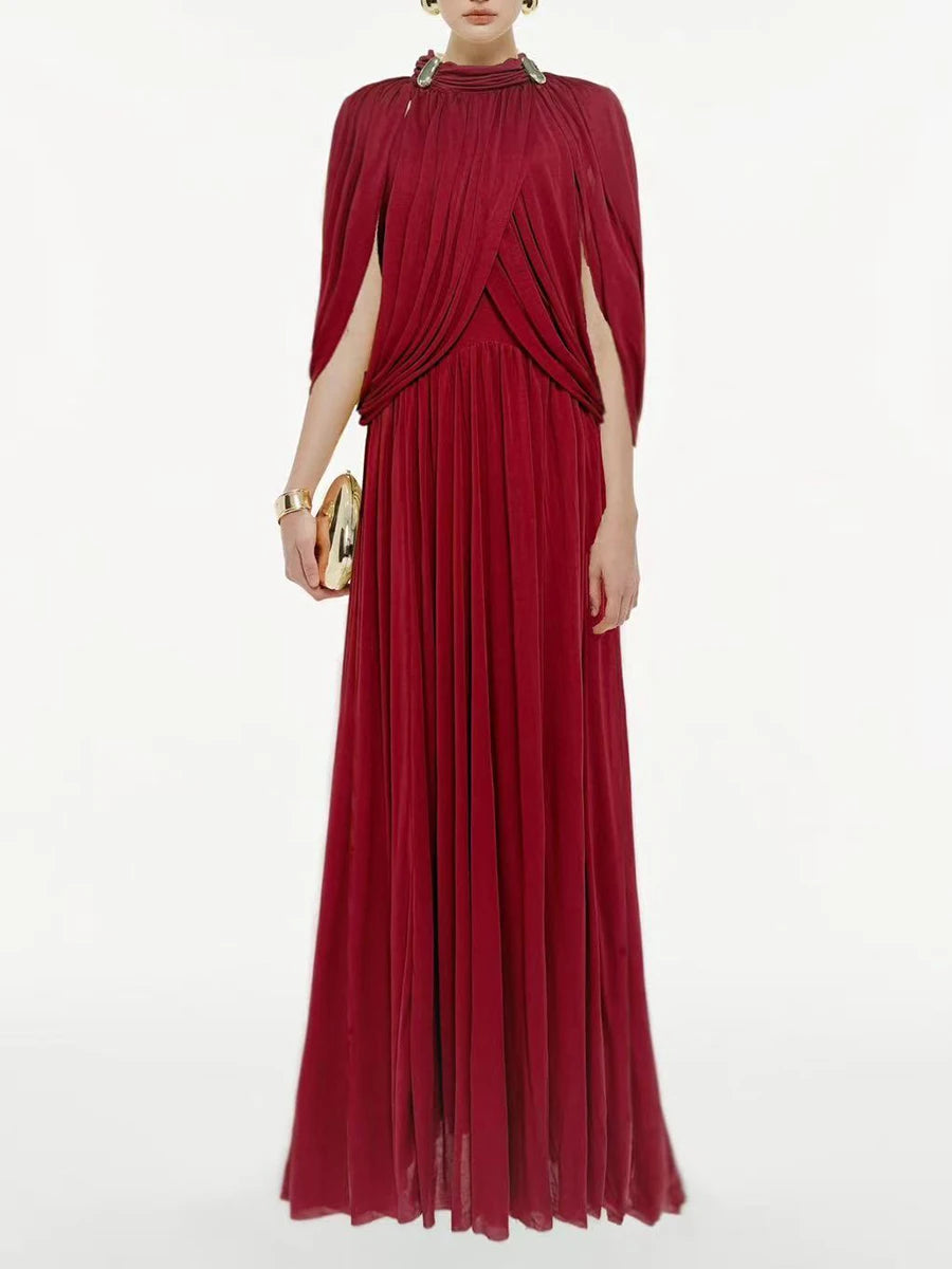 Trend4us Luxe Draped Cape Pleated Maxi Gown