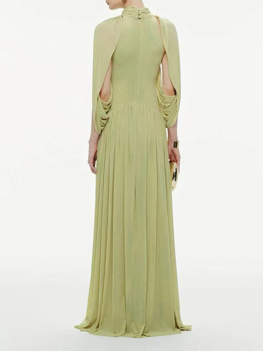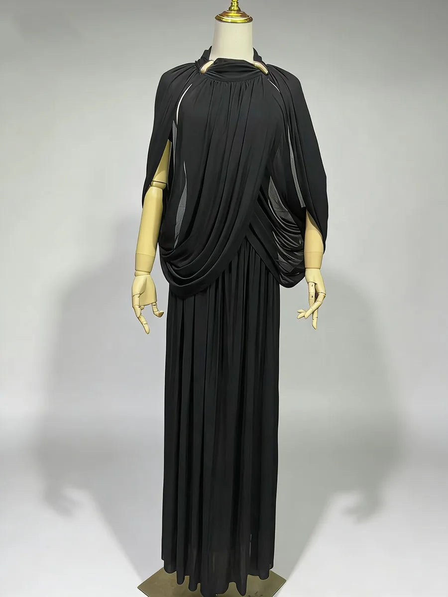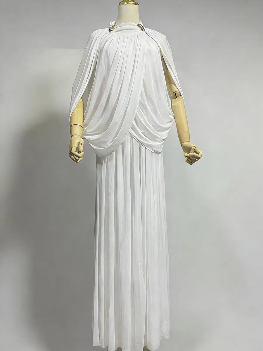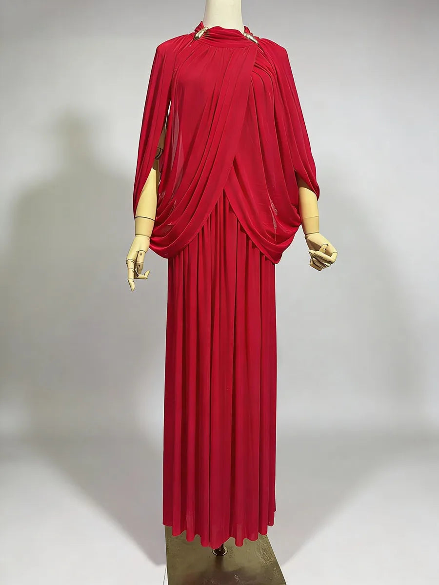 Trend4us Luxe Draped Cape Pleated Maxi Gown