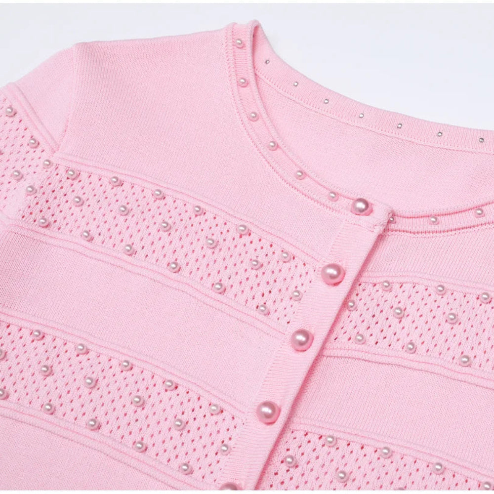 Elevated, feminine, and beautifully detailed — this embellished knit cardigan and pleated maxi dress set is a celebration of refined elegance. The fitted knit cardigan features delicate beading that catches the light with every movement, while the matching pleated maxi dress flows gracefully to an ankle-length finish. Crafted in a breathable viscose-nylon blend, this eco-friendly set is as comfortable as it is stunning. Available in Pink, Wine Red, Black, and White — four timeless colorways for every occasion.