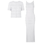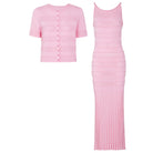 - Set Includes: Embellished Knit Cardigan + Pleated Maxi Dress