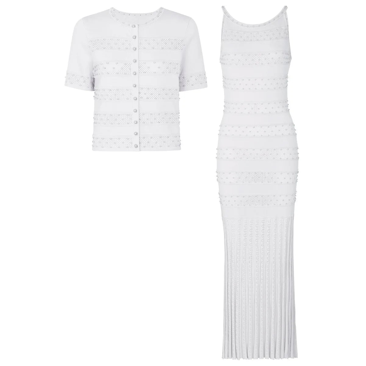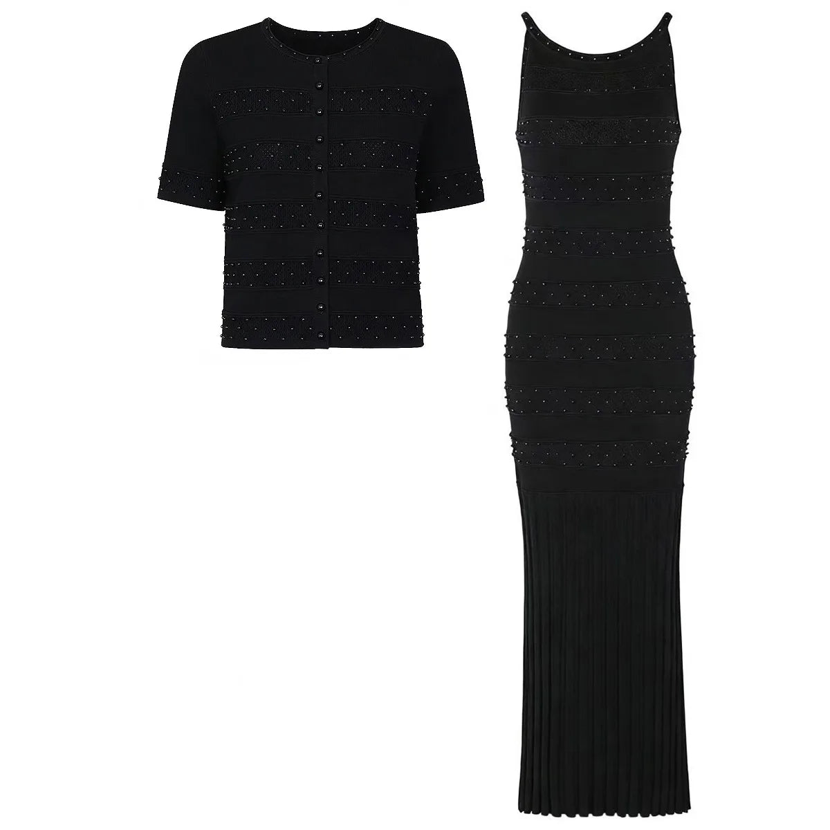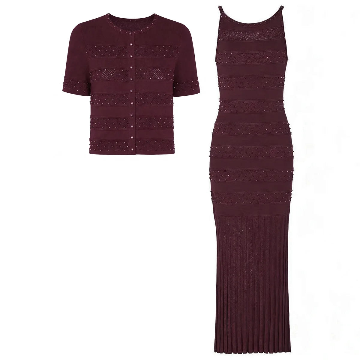 Luxe Embellished Knit Cardigan & Pleated Maxi Dress Set