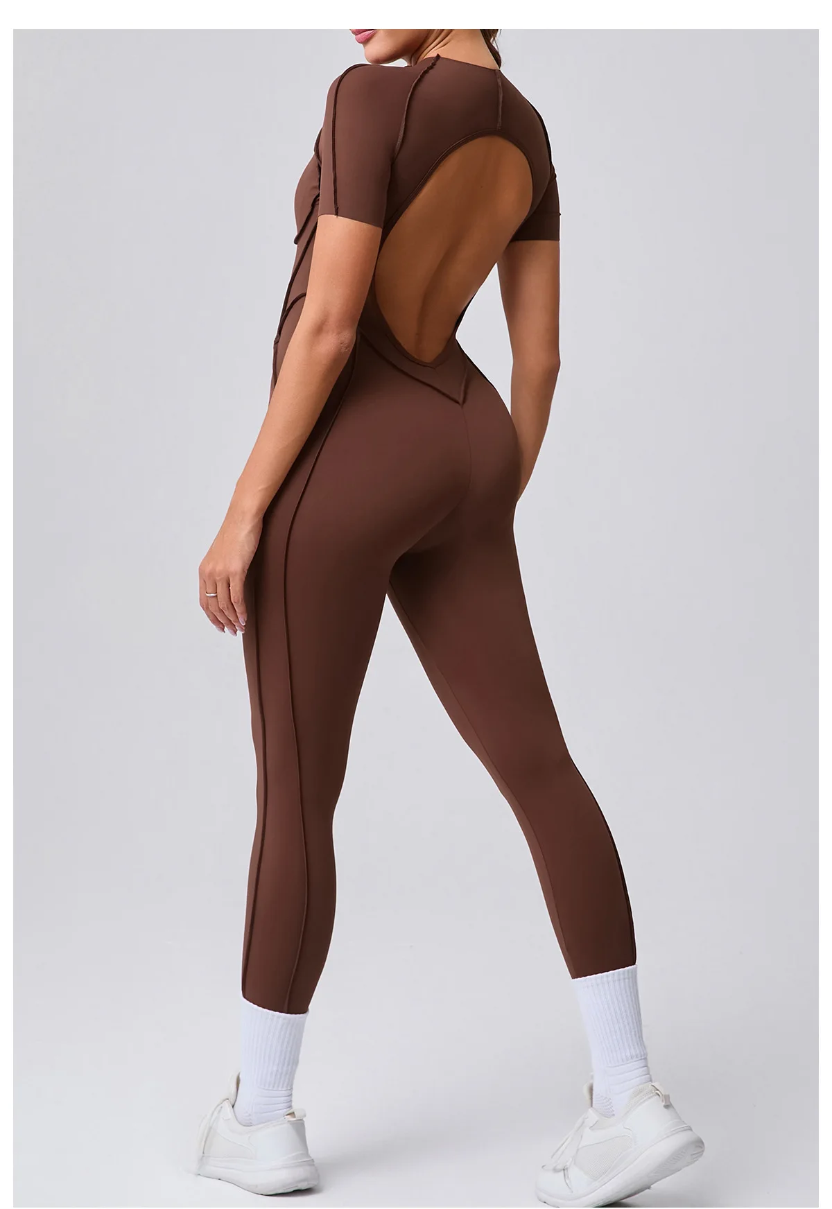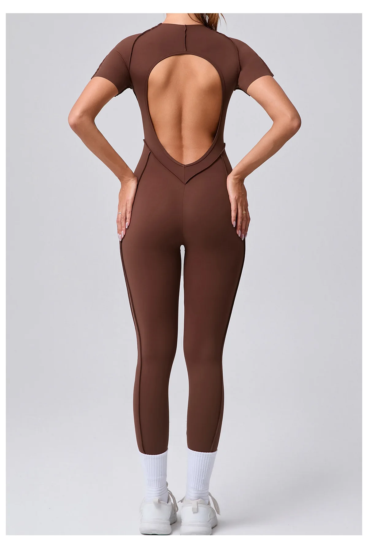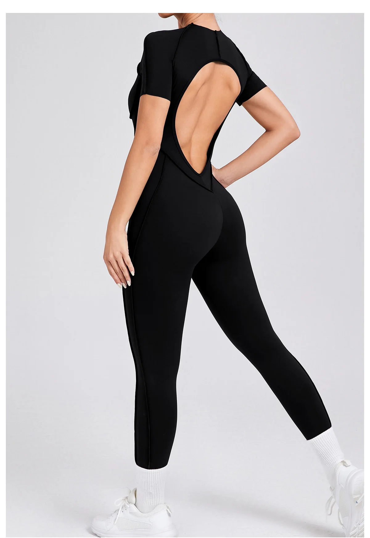 The Trend4us Backless Sculpting Short-Sleeve Activewear Jumpsuit is designed to contour your body with precision paneling and a seamless, second-skin feel. Featuring a sleek short-sleeve silhouette and a dramatic open-back cutout, this jumpsuit blends performance functionality with elevated, fashion-forward design.