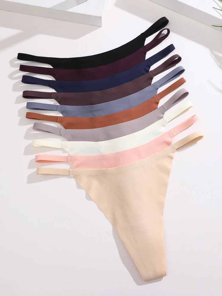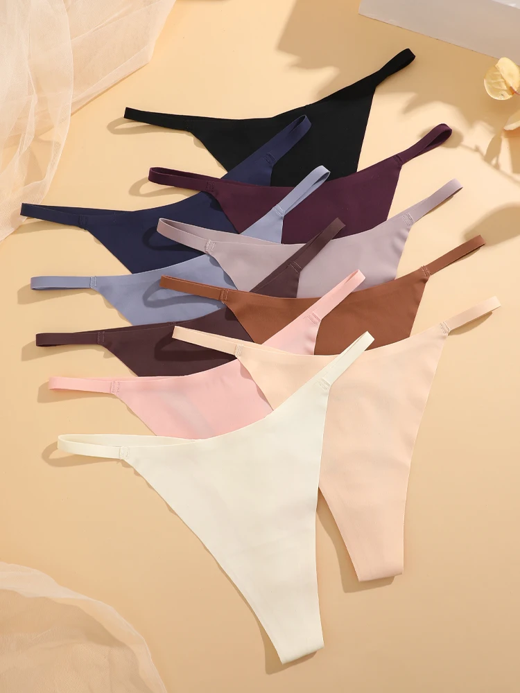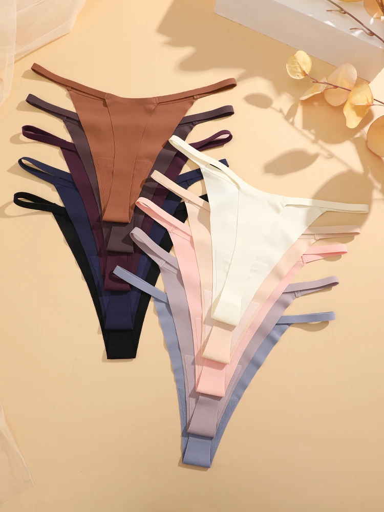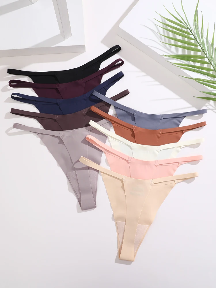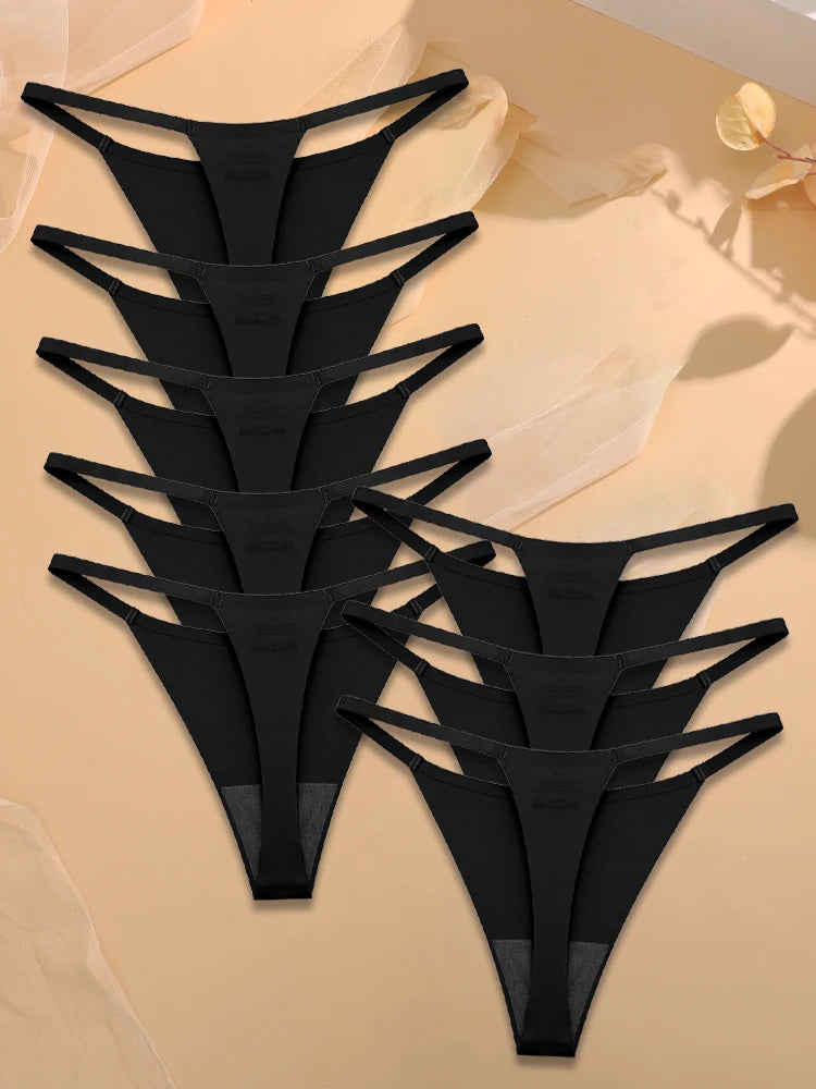 Trend4us Ice Silk Seamless Strappy Thong Panties – 8-Pack Set