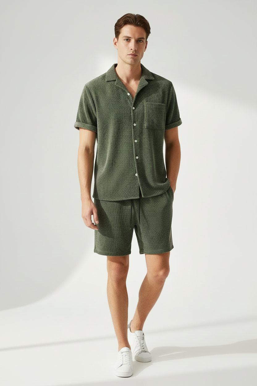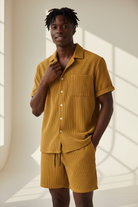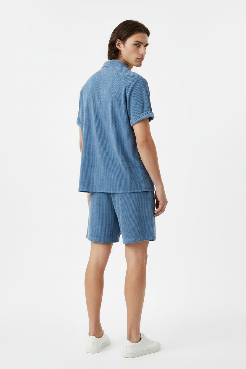 Trend4us Men's Textured Short Sleeve Shirt & Shorts Set