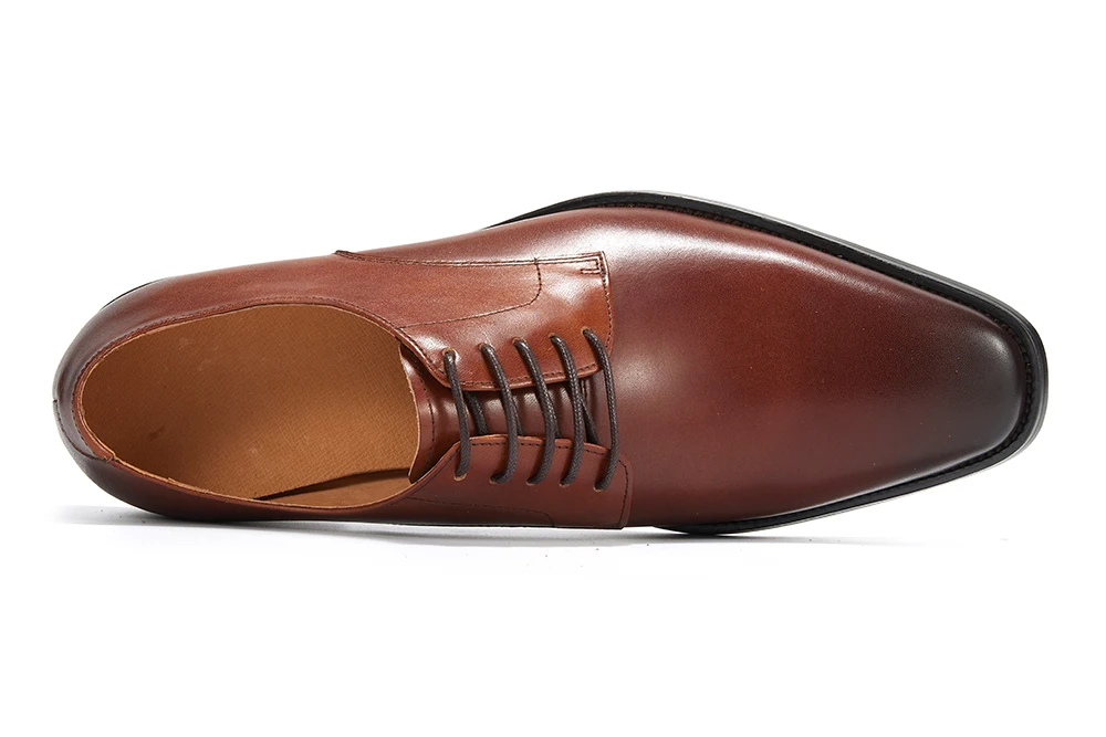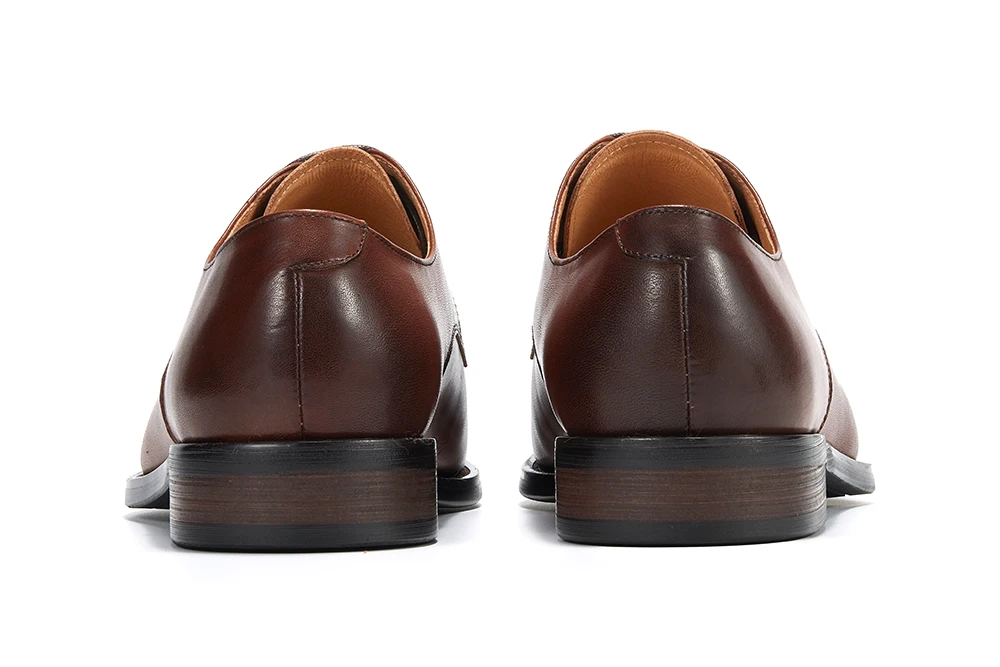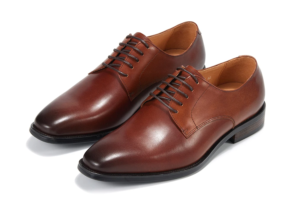 Refined, resilient, and built for the discerning gentleman — these classic leather lace-up derby dress shoes are the foundation of a polished wardrobe. The genuine leather upper and almond toe silhouette deliver a sophisticated, timeless look, while the lace-up closure ensures a secure, tailored fit. Breathable construction, anti-odor lining, and a durable rubber outsole with anti-slip grip make these shoes as functional as they are elegant. A hard-wearing investment piece that transitions effortlessly from the boardroom to formal occasions. Available in Brown.