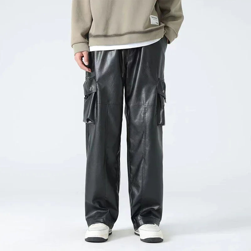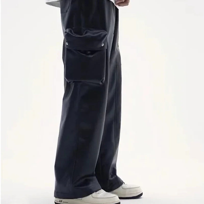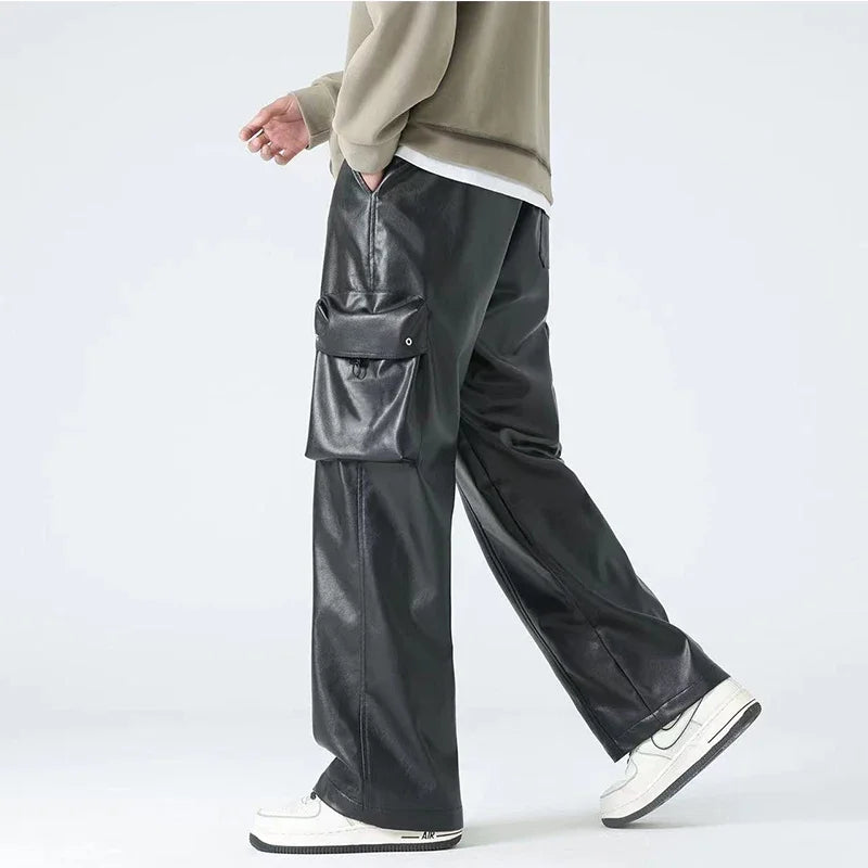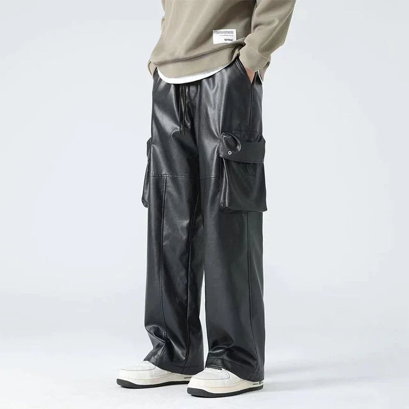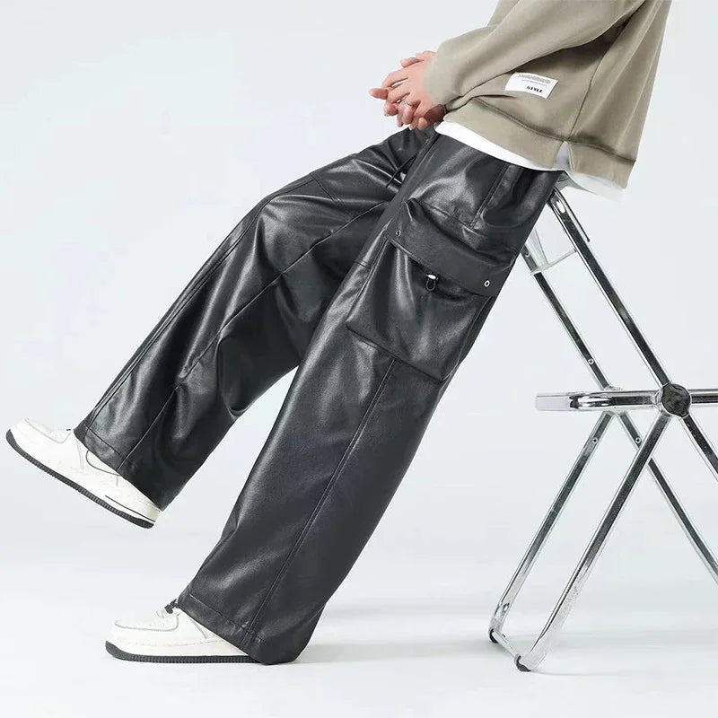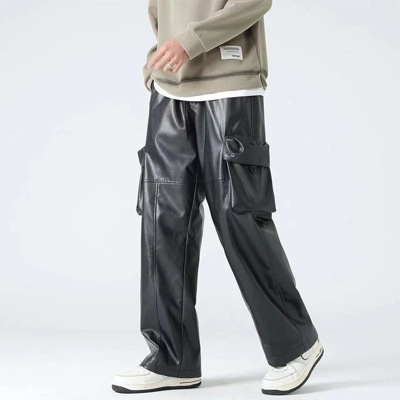 Trend4us Men's Bold Leather Streetwear Cargo Pants
