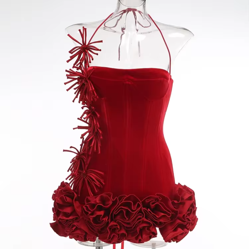 Elevate your evening wardrobe with the Trend4us Luxe Rosette Corset Mini Dress. Expertly designed, this dress features a structured corset silhouette that enhances your natural shape while providing elegant support. The delicate rosette detailing adds a refined, feminine touch, making it perfect for special occasions. Crafted with attention to fit and finish, this mini dress combines sophistication with a modern edge for a standout look.