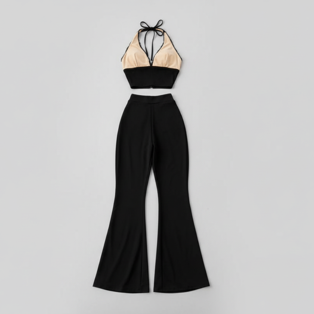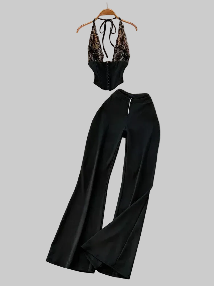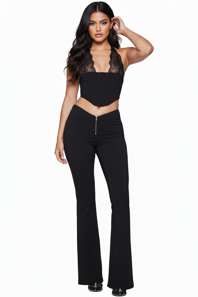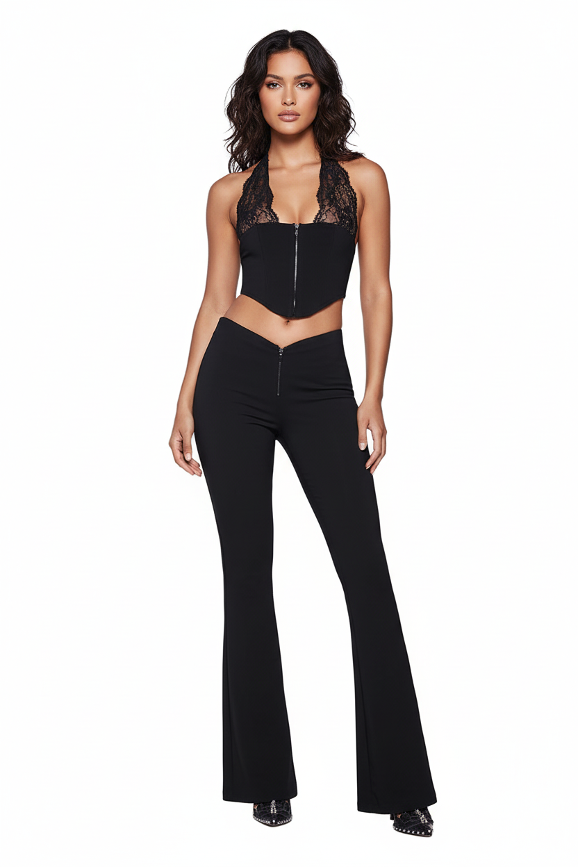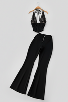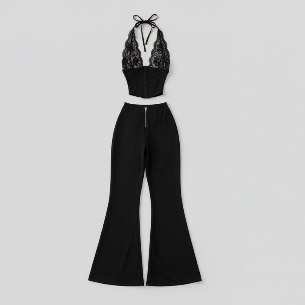 Modern Lace Top & Sculpted Flare Pants Set - Two-Piece Outfit