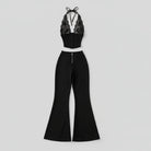 Make a statement with this sophisticated lace top and sculpted flare pants set. Combining delicate lace detailing with flattering flare silhouettes, this two-piece outfit delivers refined elegance for any occasion where you want to look polished and put-together.