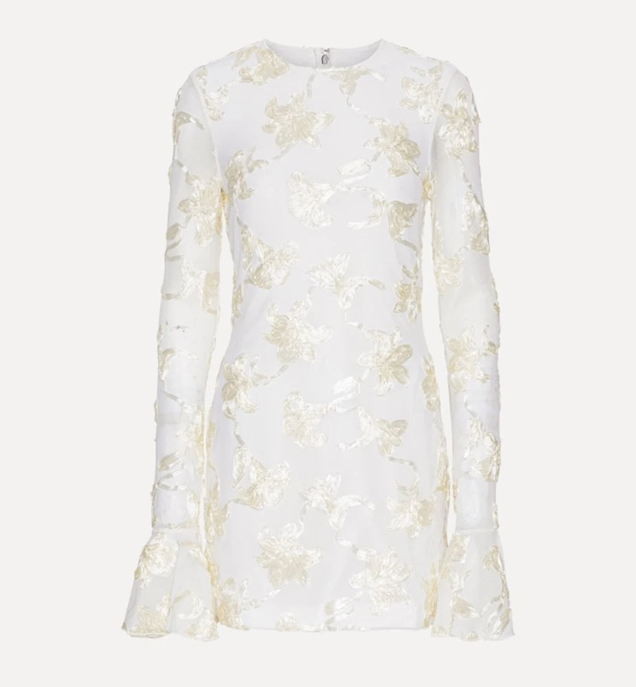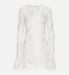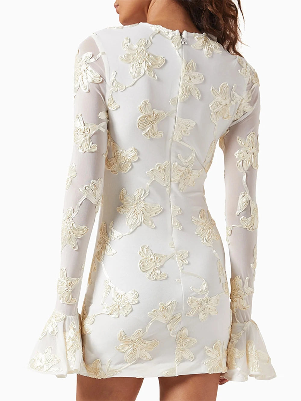 Trend4us Elegant Sheer Floral Embroidered Bell Sleeve Mini Dress