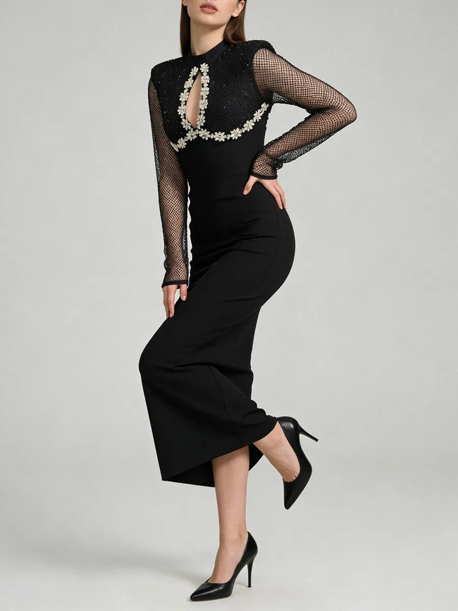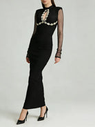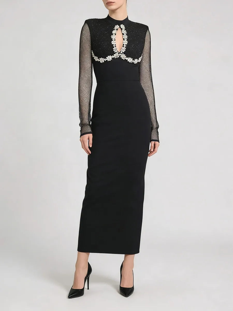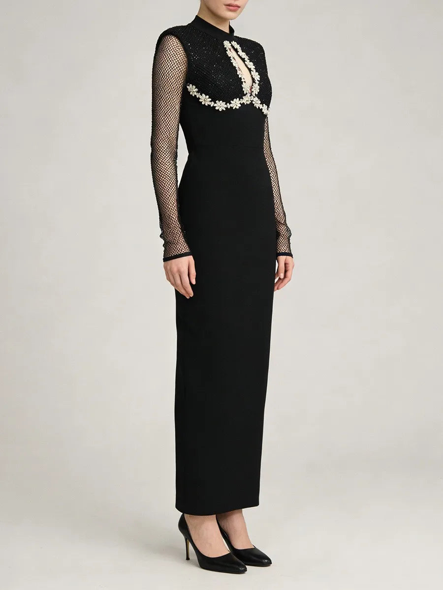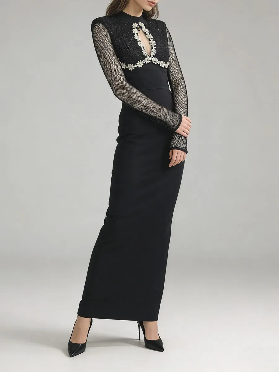 Trend4us Luxe Embellished Mesh Long-Sleeve Evening Gown