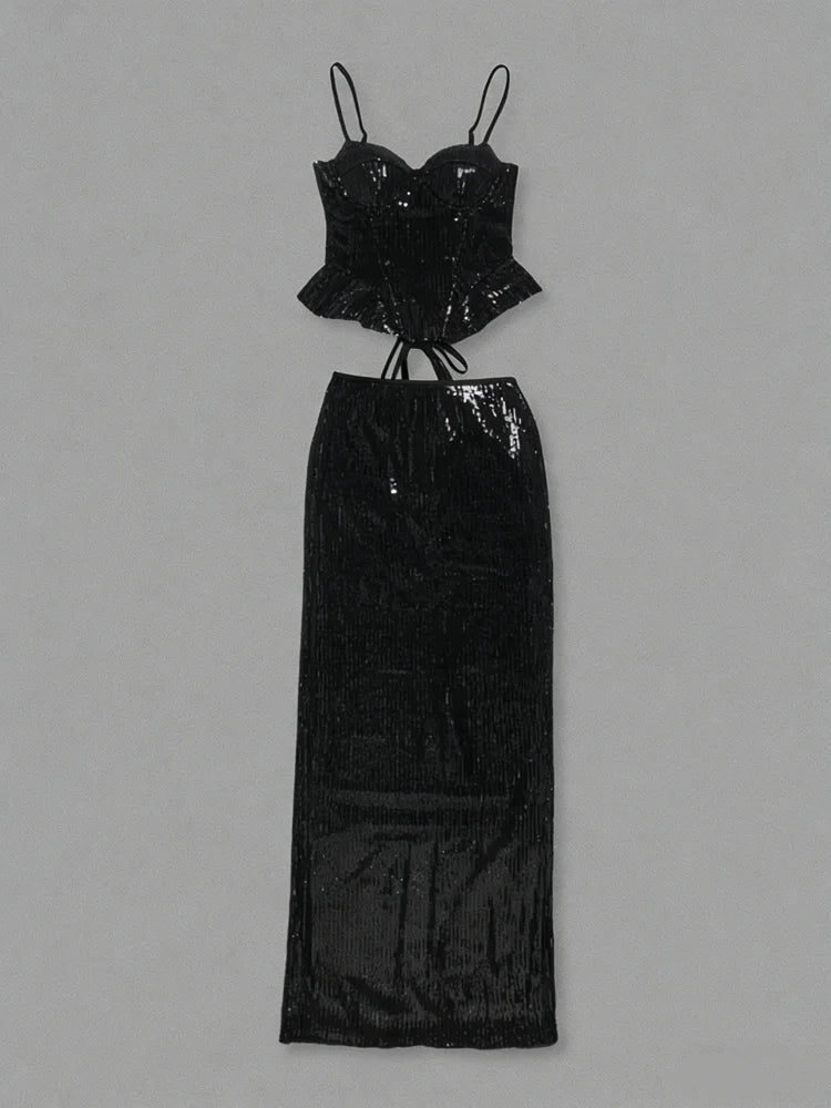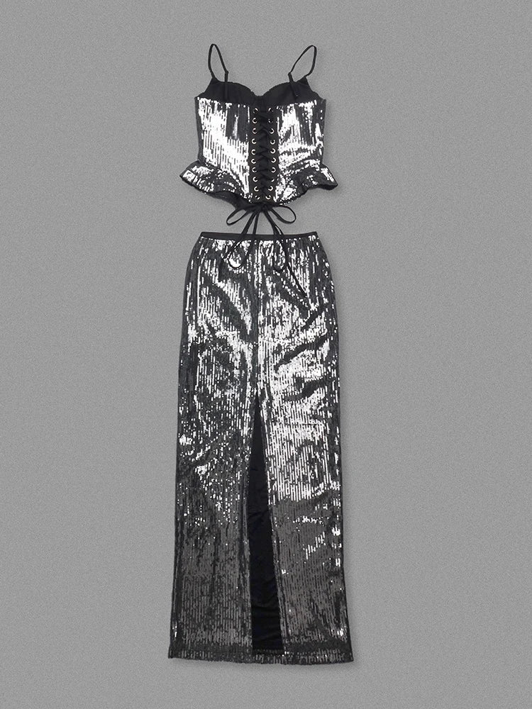 Trend4us Luxe Sequin Corset Top & Maxi Skirt Set
