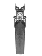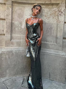 Make an unforgettable entrance in this show-stopping sequin corset top and maxi skirt set. Designed to dazzle, this two-piece ensemble combines glamorous sparkle with a flattering silhouette that celebrates your curves and commands attention at any special occasion.