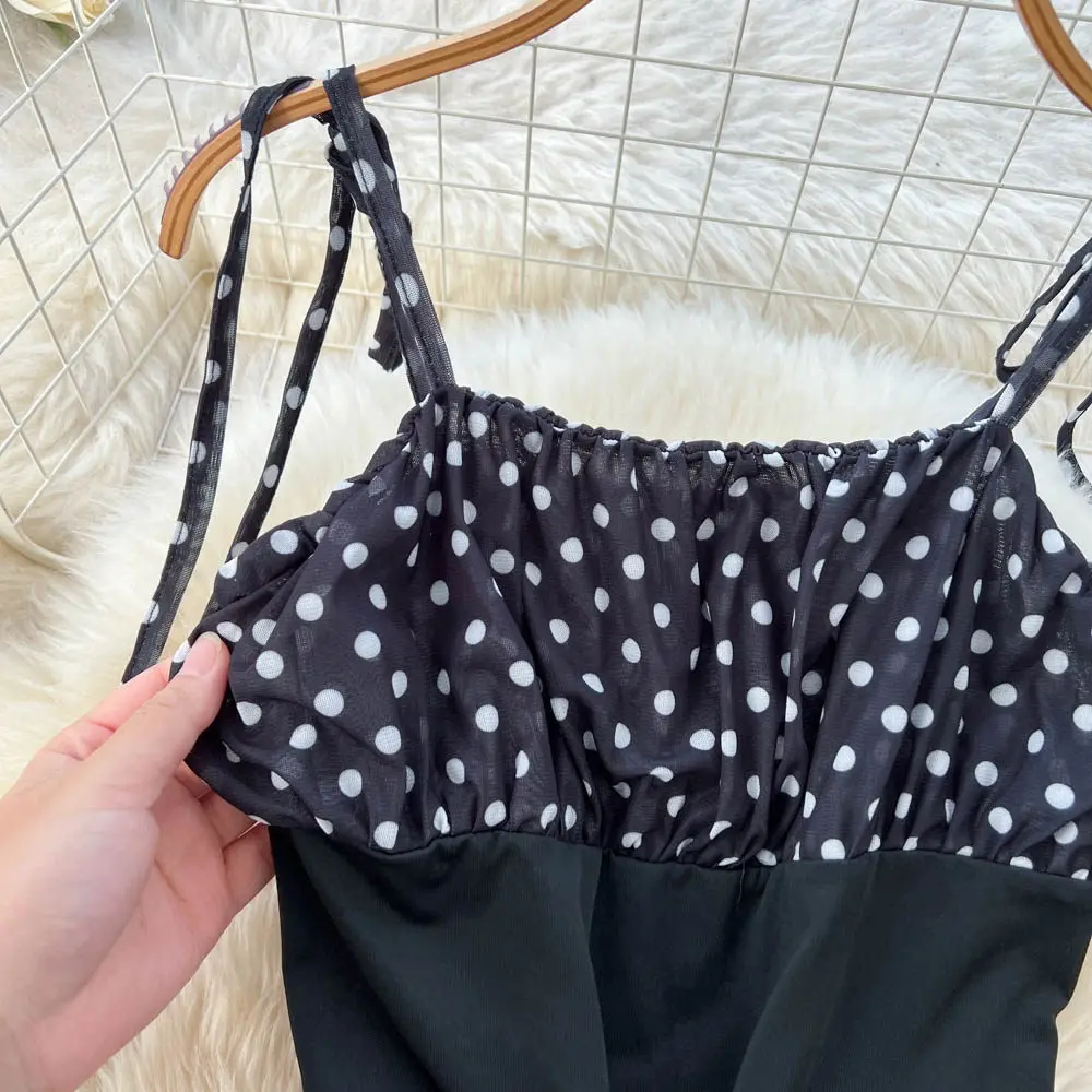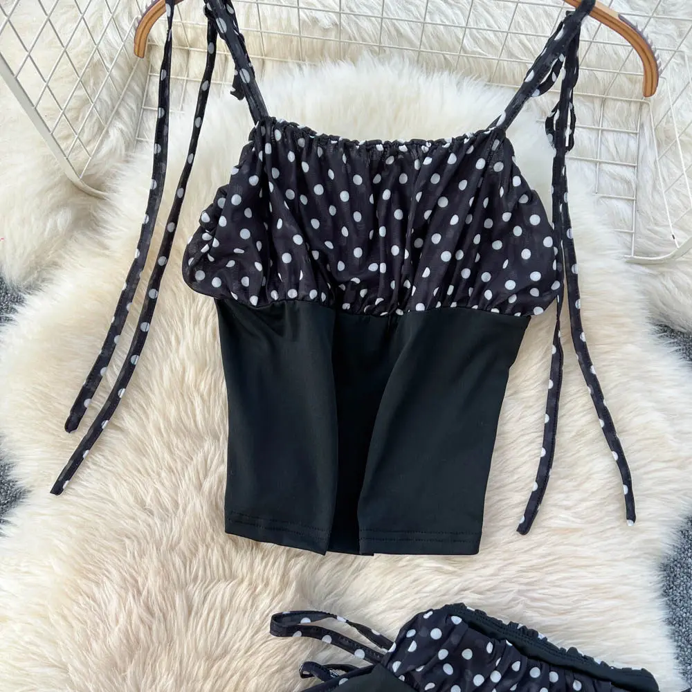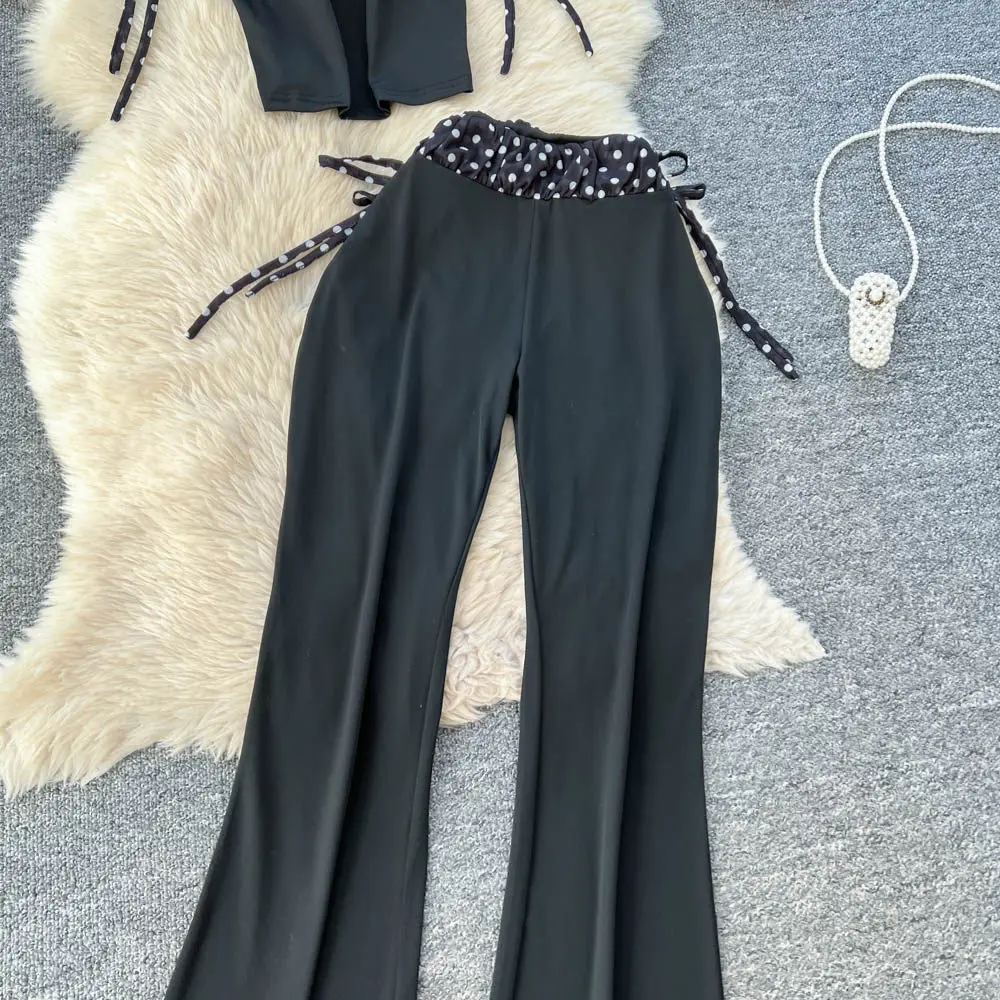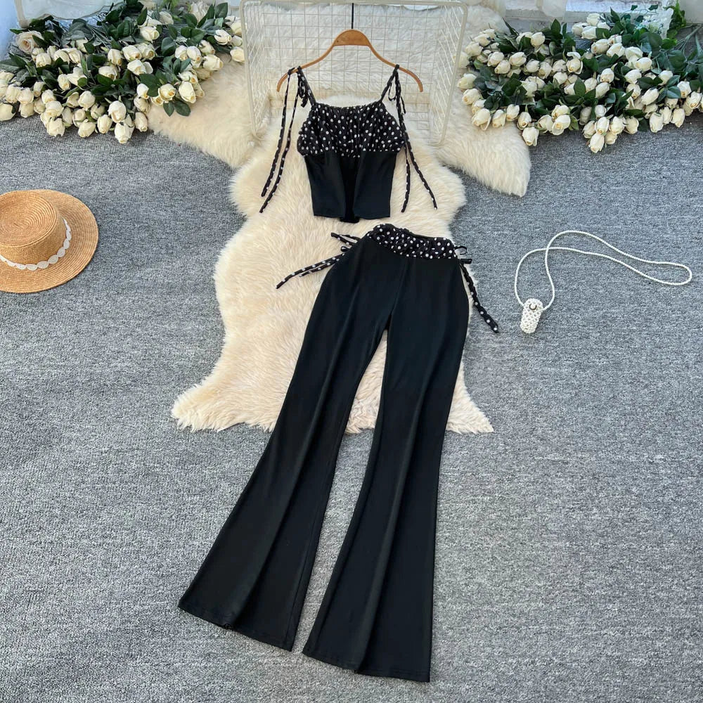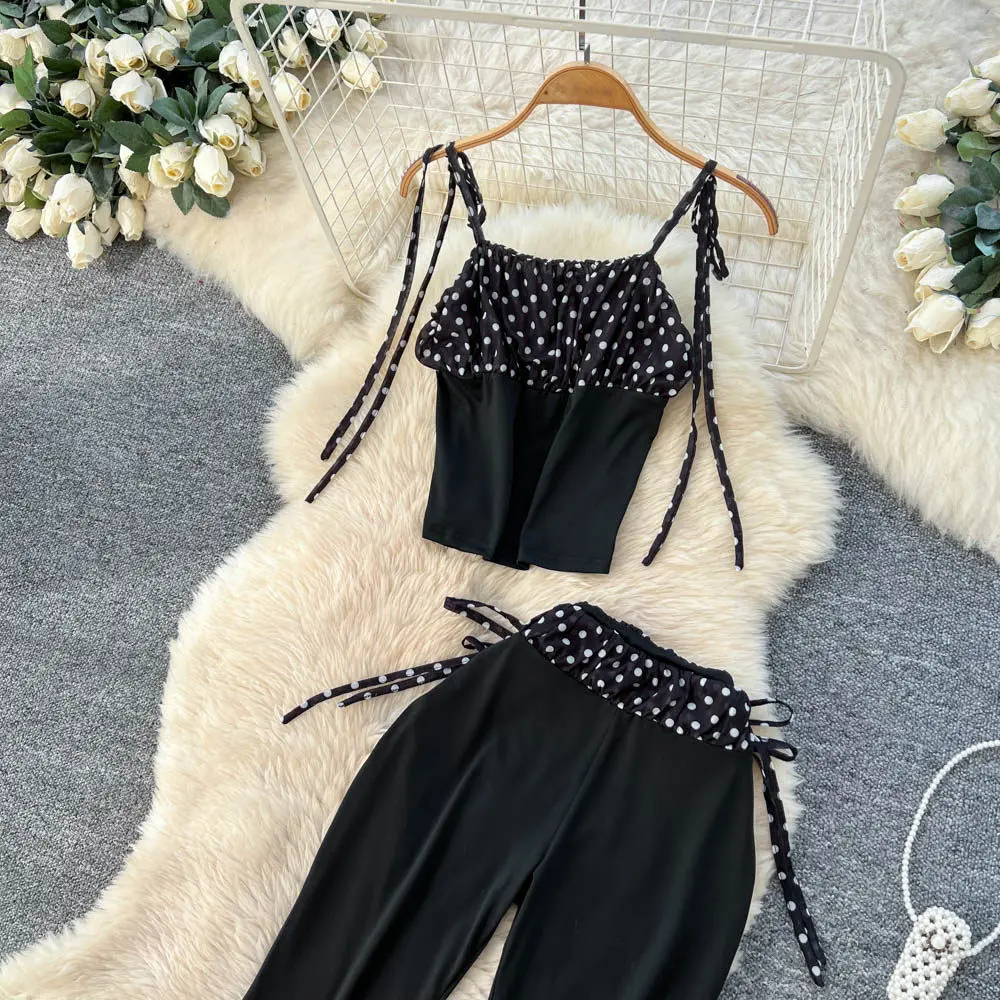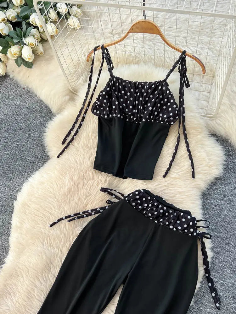 Trend4us Polka Dot Tie-Strap Two-Piece Pants Set