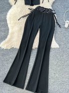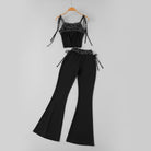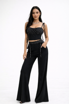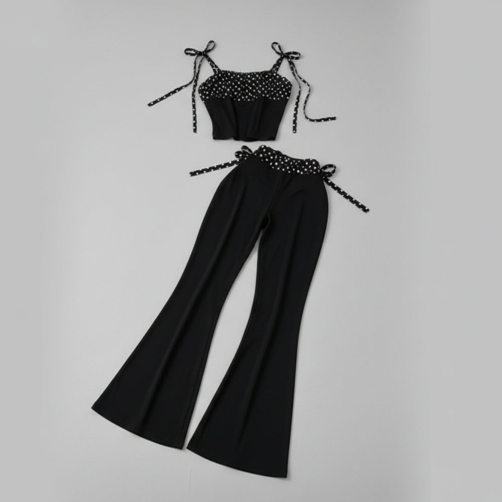 Playful meets polished in the Trend4us Polka Dot Tie-Strap Two-Piece Pants Set. Designed with a flattering corset-inspired top and flowing high-waist pants, this set blends vintage charm with modern elegance.