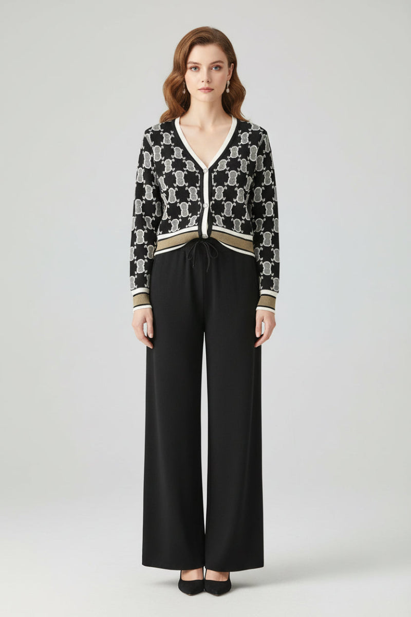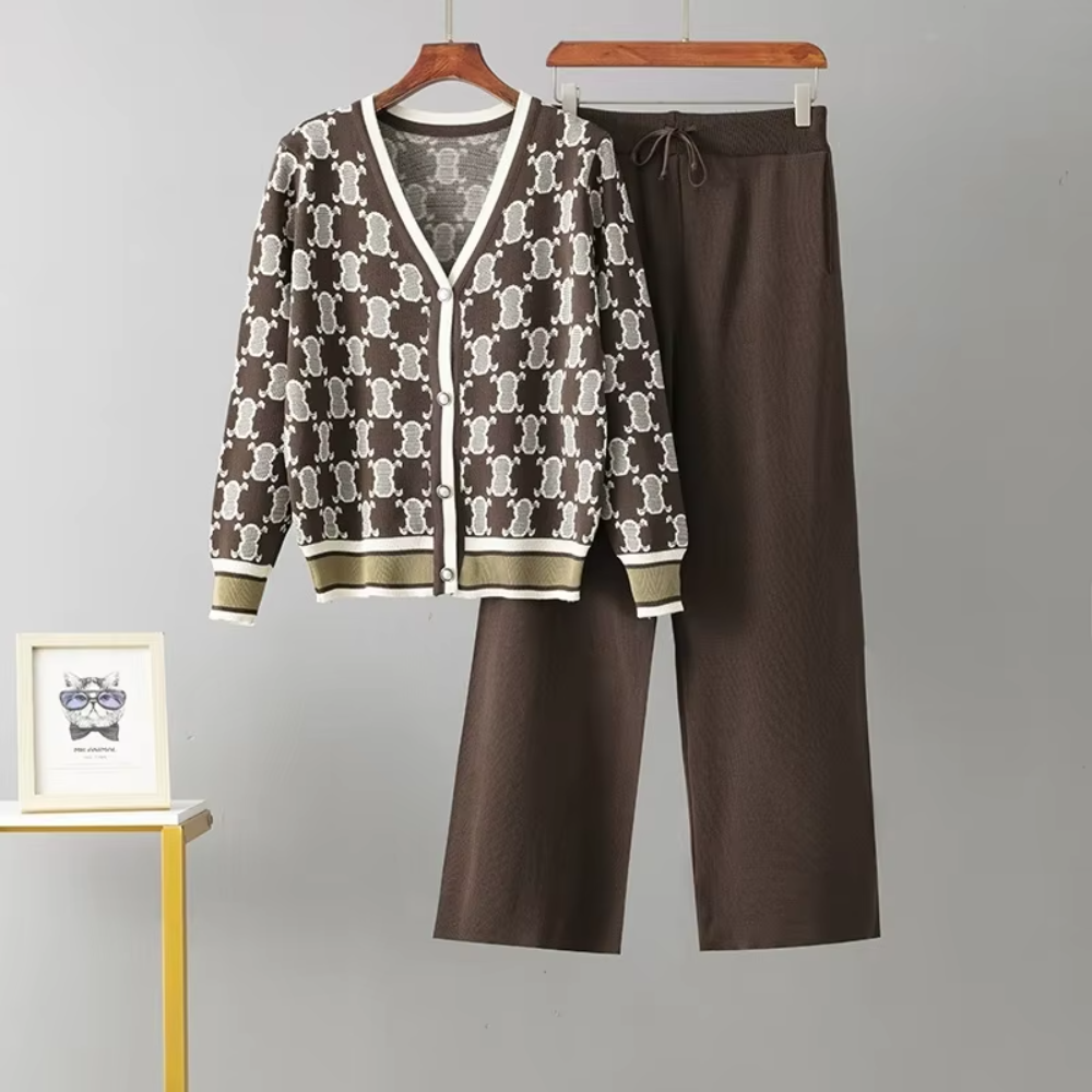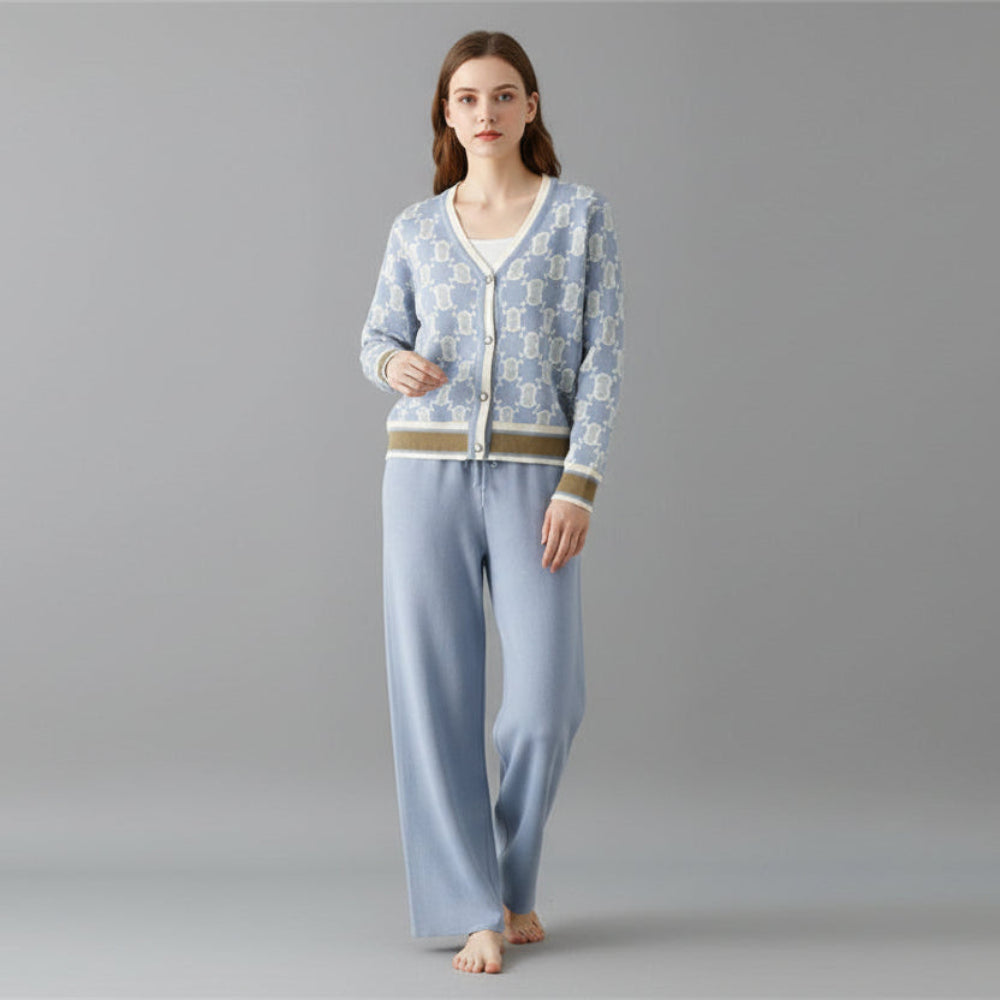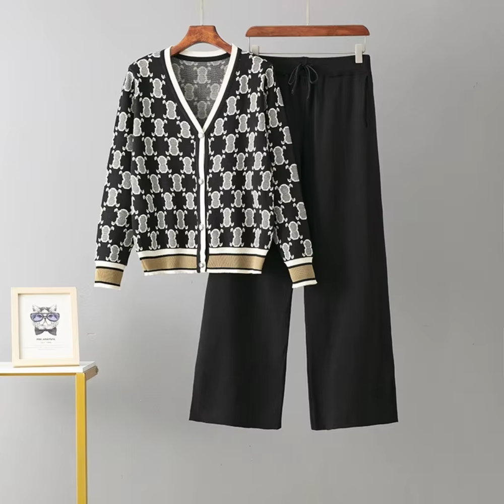Trend4us Jacquard Knit Cardigan & Pants Lounge Set