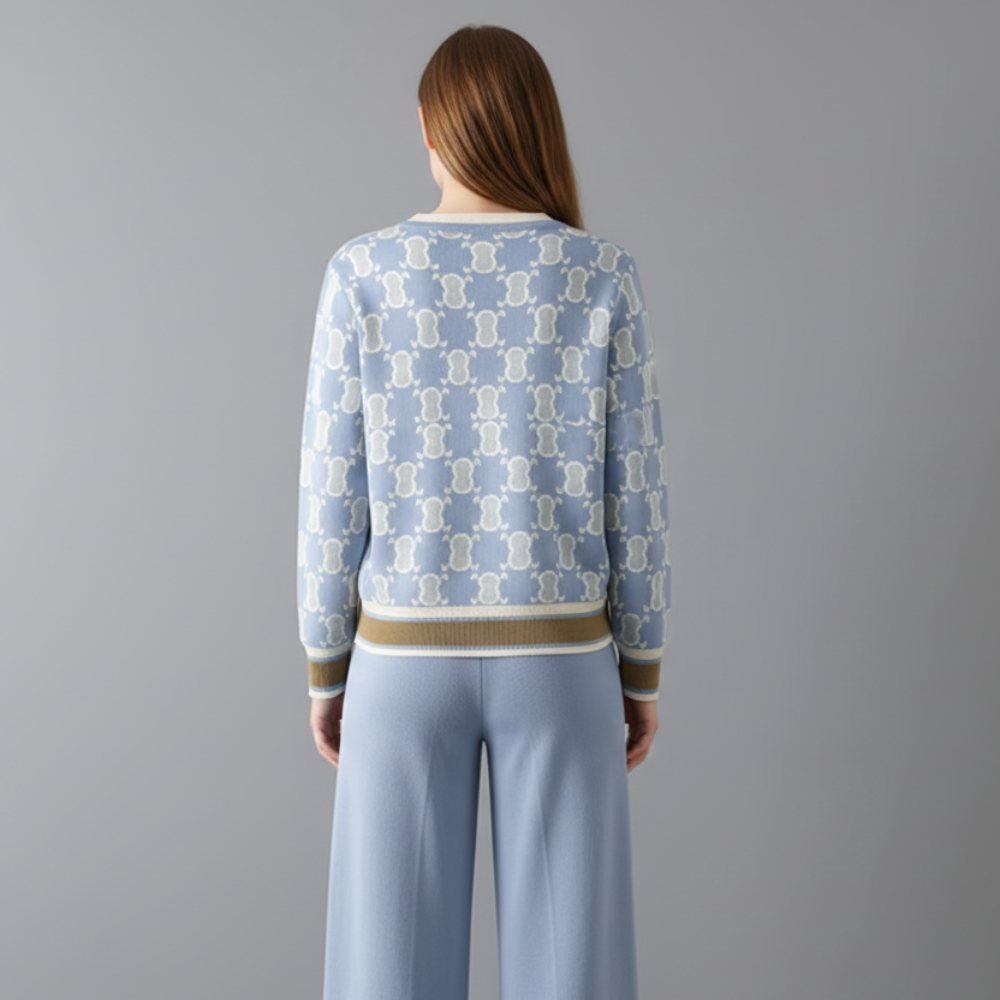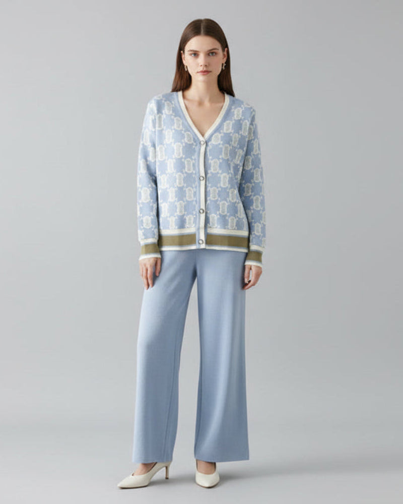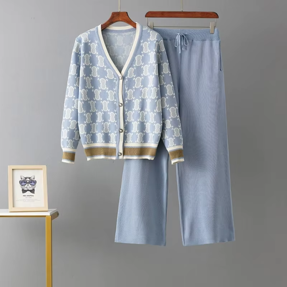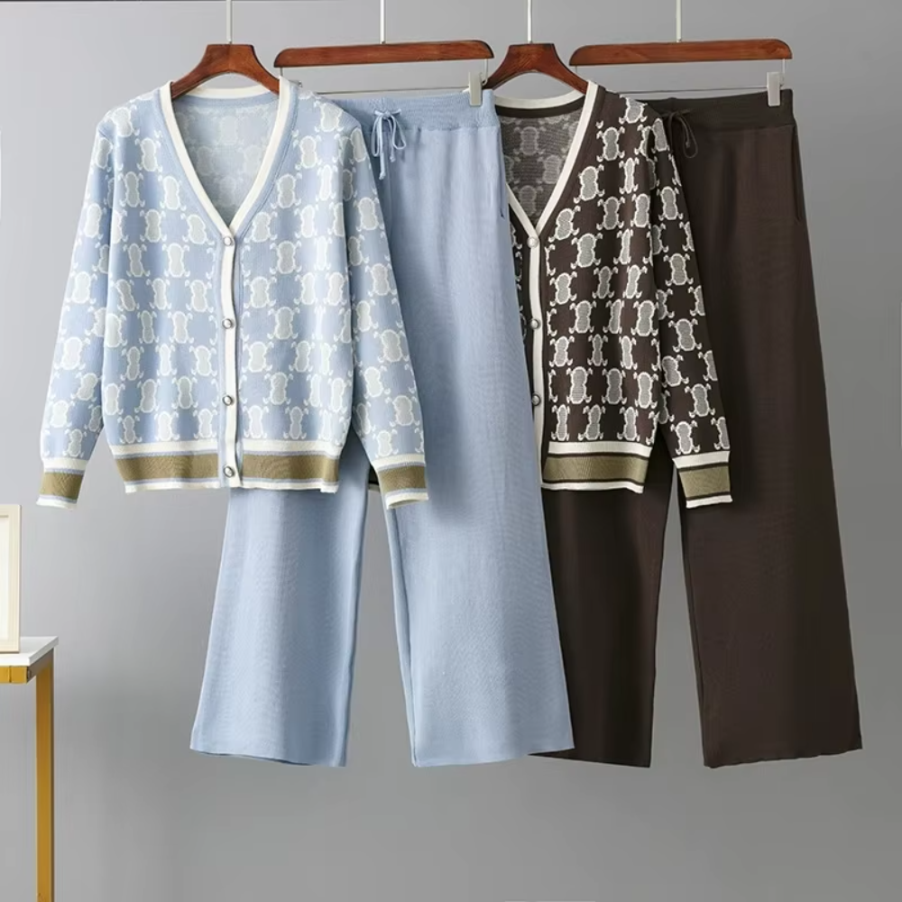 Trend4us Jacquard Knit Cardigan & Pants Lounge Set