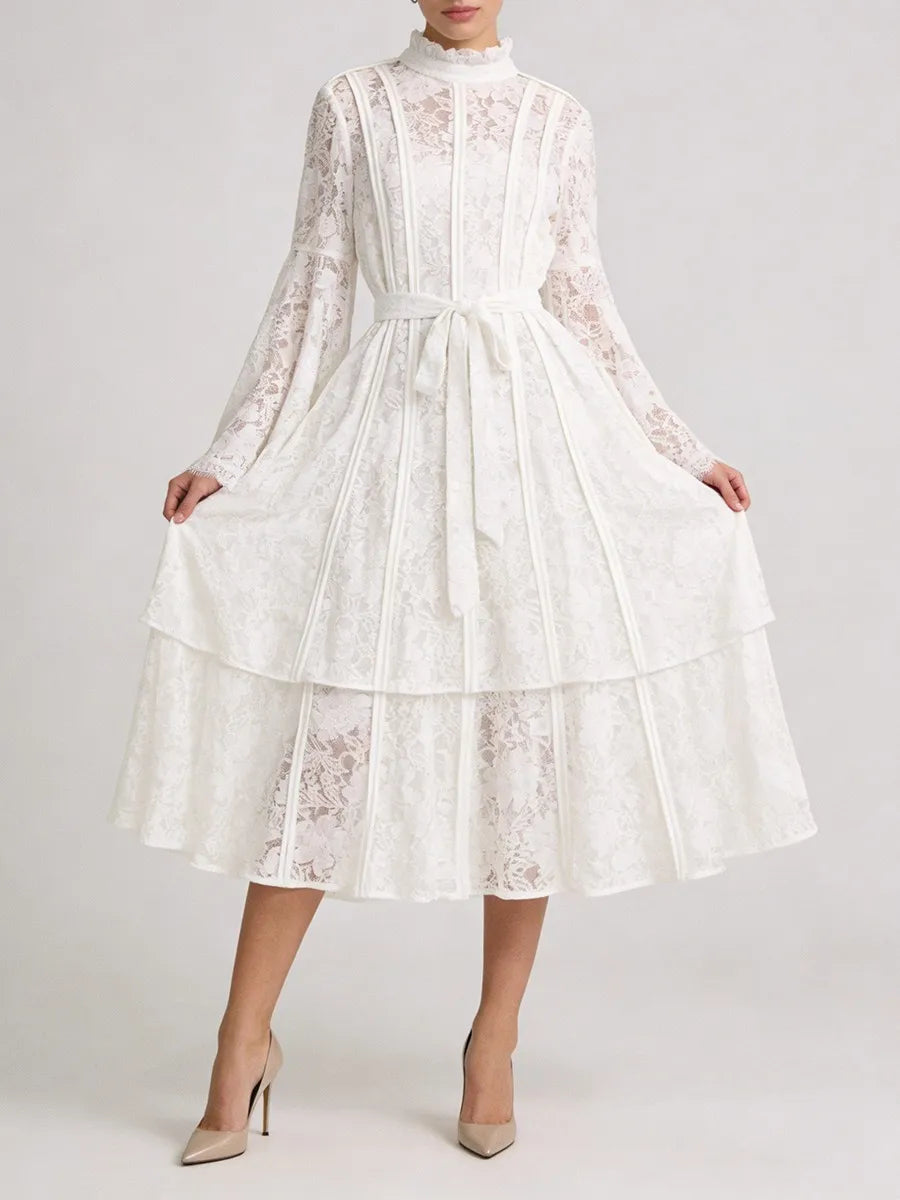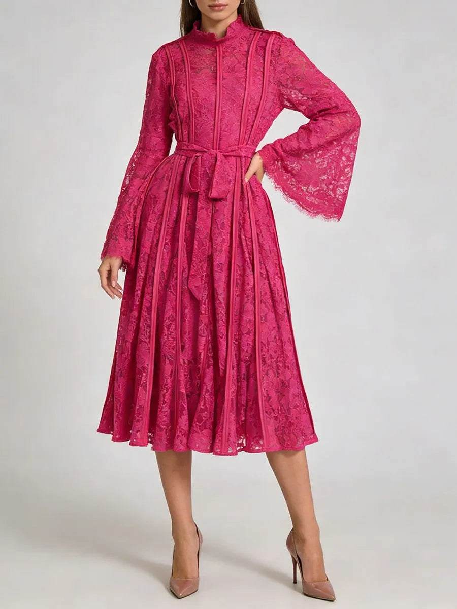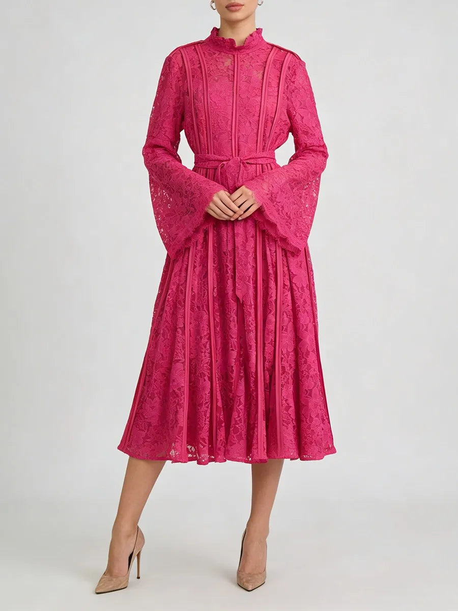Trend4us Luxe Lace Long-Sleeve Midi Dress