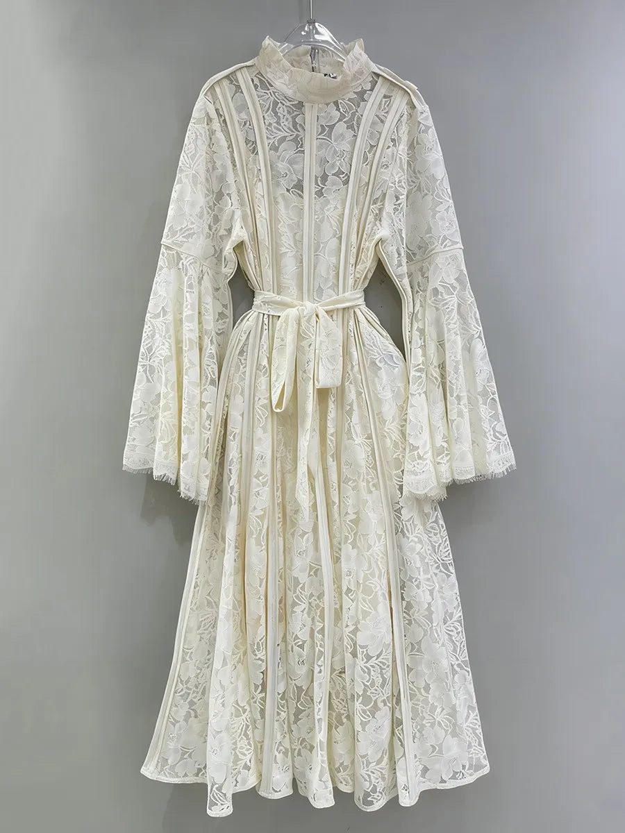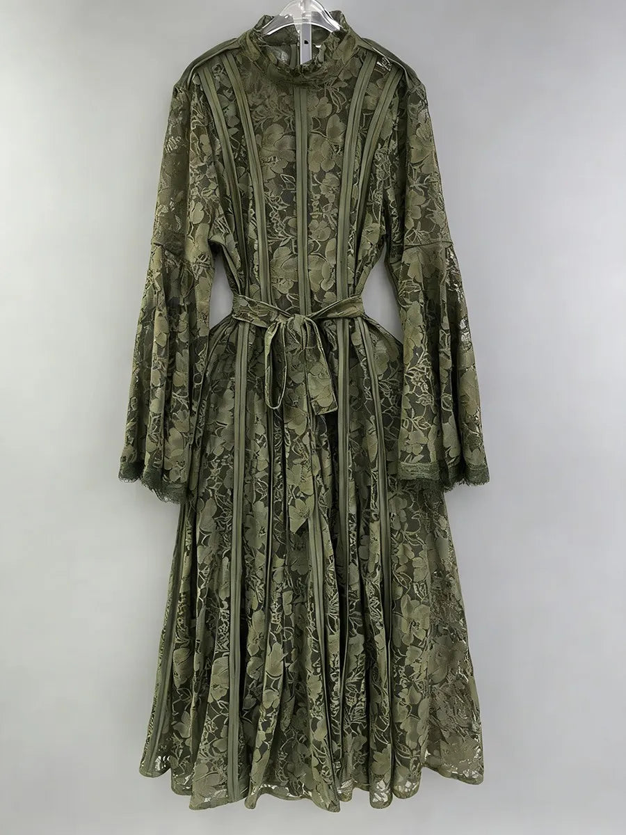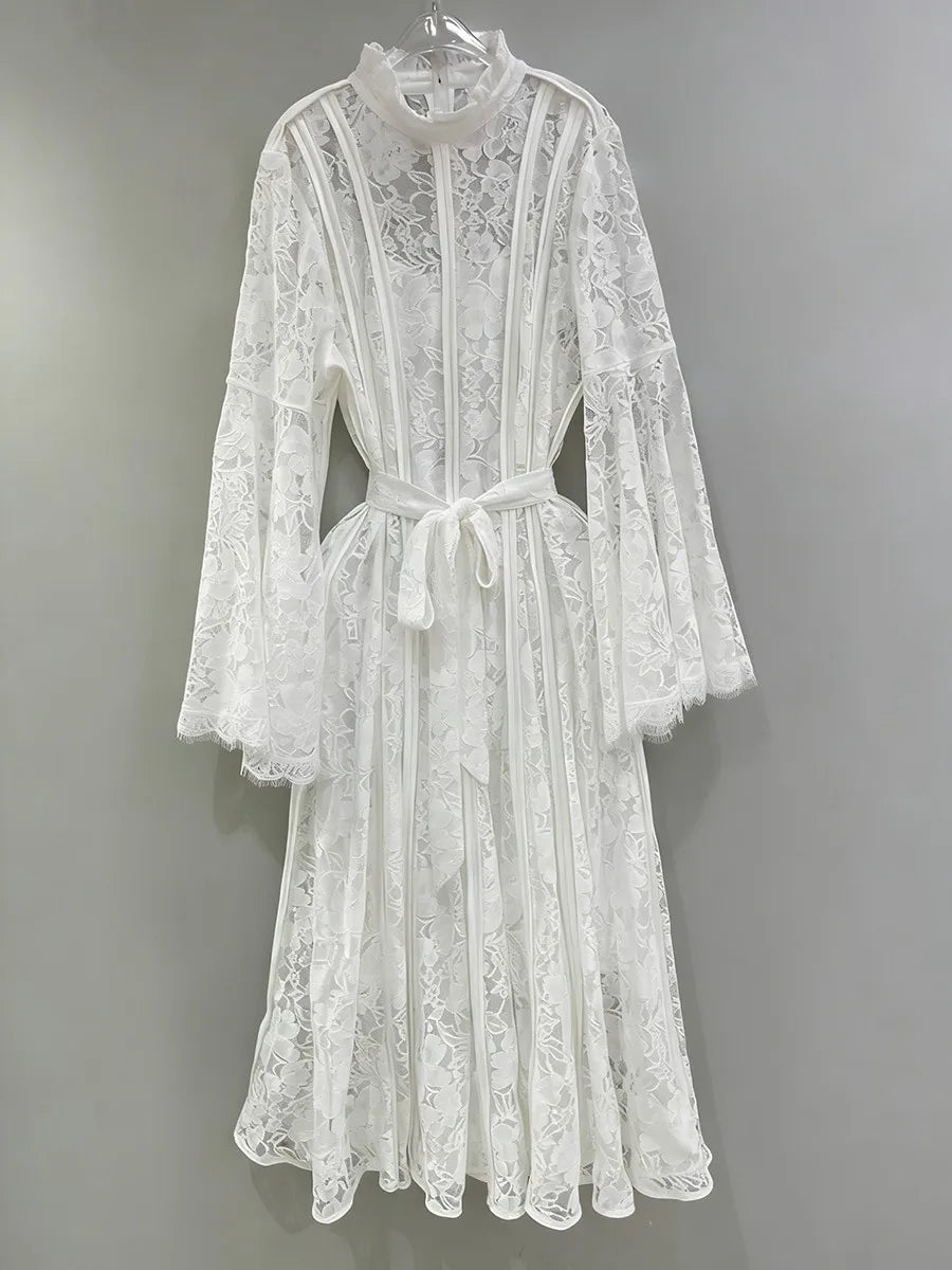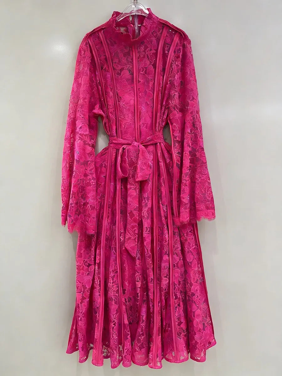 Trend4us Luxe Lace Long-Sleeve Midi Dress