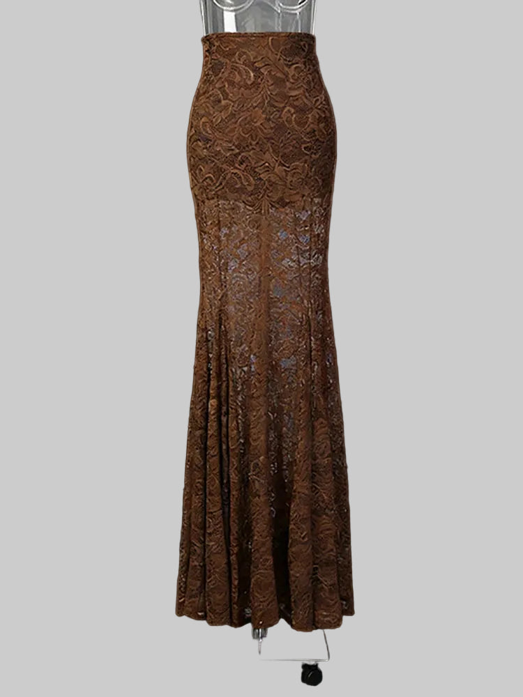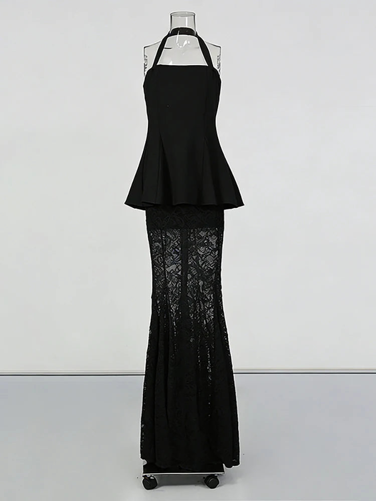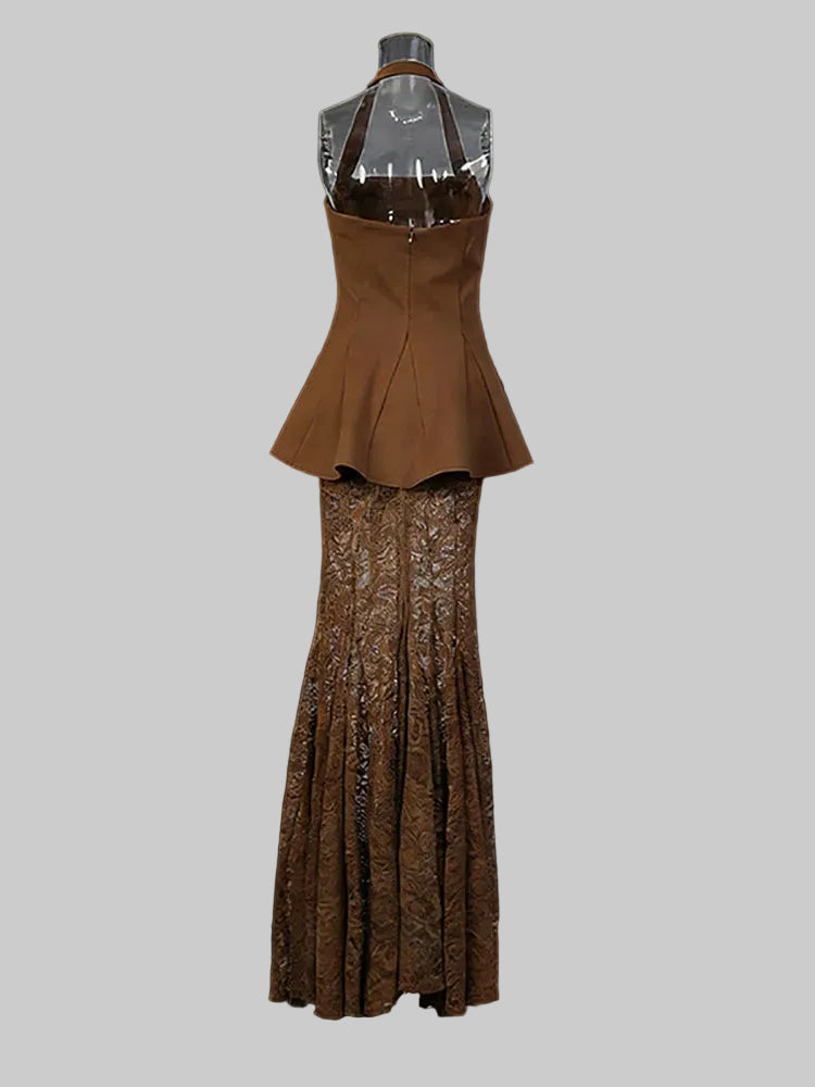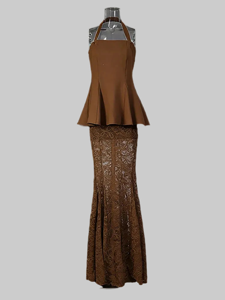 Trend4us Vintage Halter Peplum Top & Lace Maxi Skirt Set