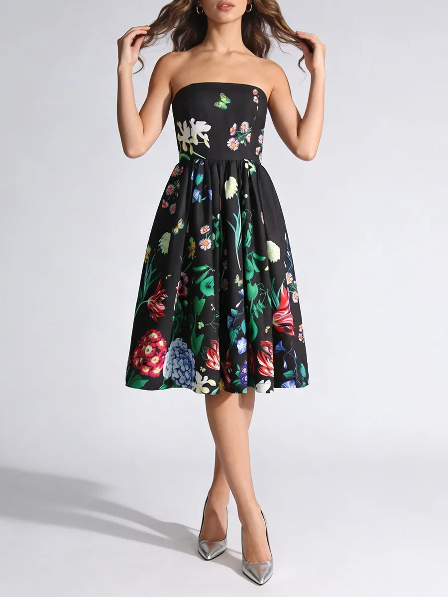 Trend4us Butterfly-Embroidered Strapless Maxi Dress