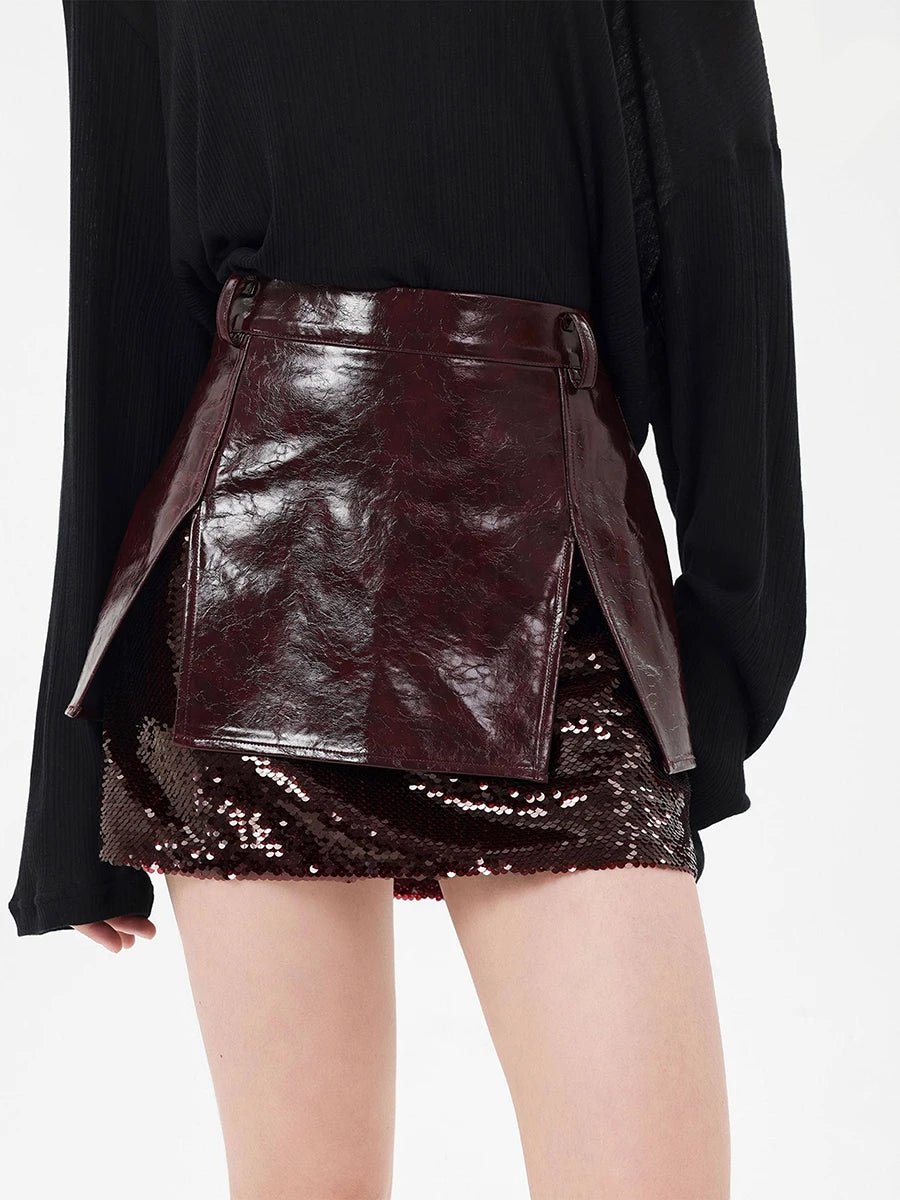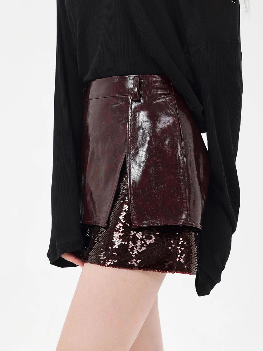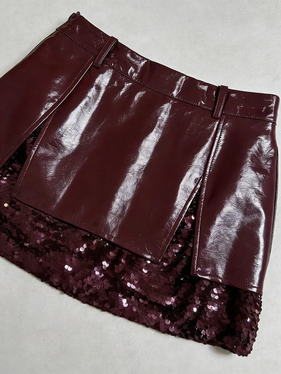 Trend4us Luxe Faux Leather Overlay Sequin Mini Skirt