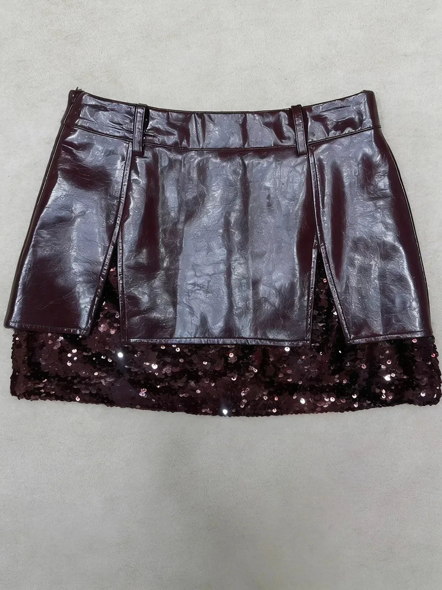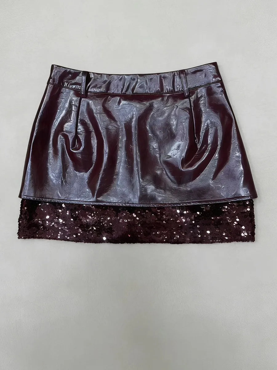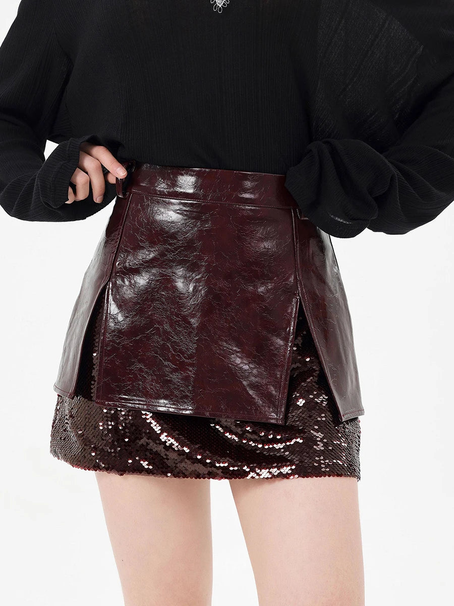 Trend4us Luxe Faux Leather Overlay Sequin Mini Skirt