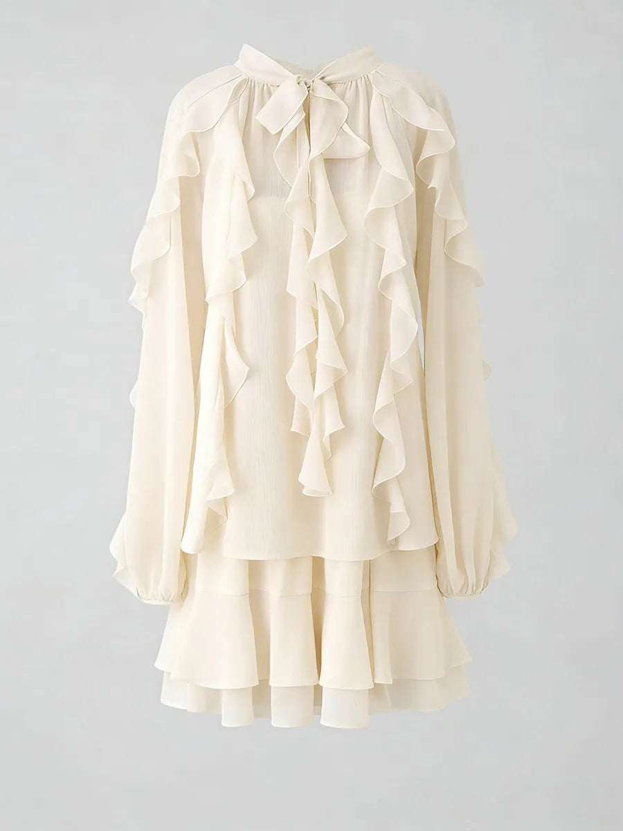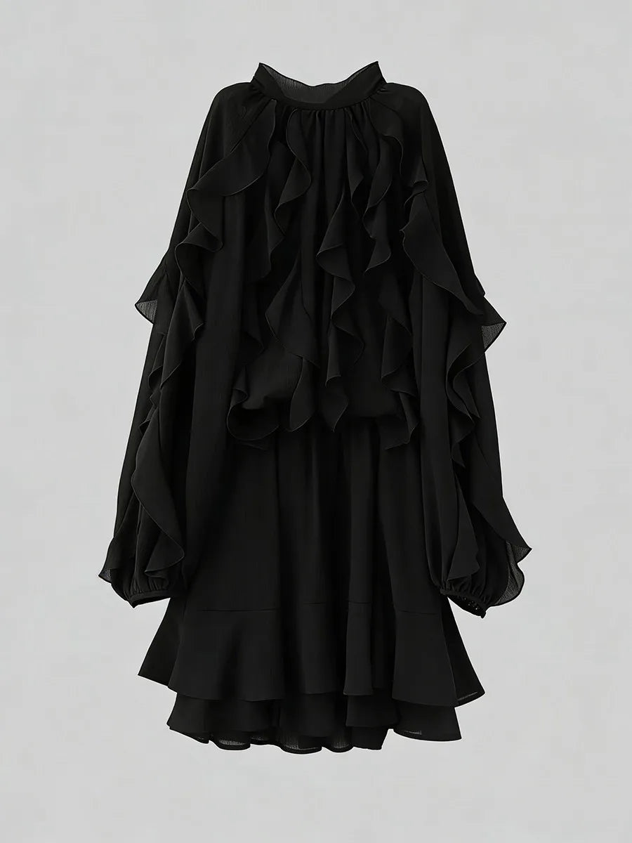 Trend4us Luxe Ruffle-Trim Long-Sleeve Blouse & Mini Skirt Set