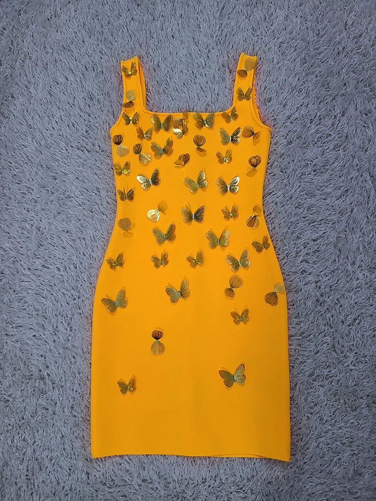 Trend4us 3D Butterfly Embellished Sculpting Mini Dress