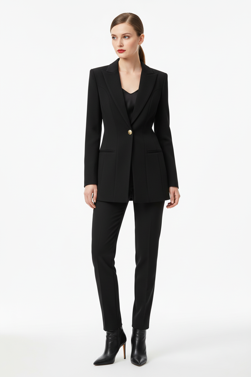 Elevate your professional wardrobe with this luxe fitted blazer dress that seamlessly transitions from boardroom to evening events. Designed for the modern woman who values polished sophistication and versatile style.