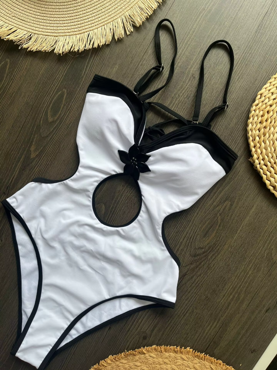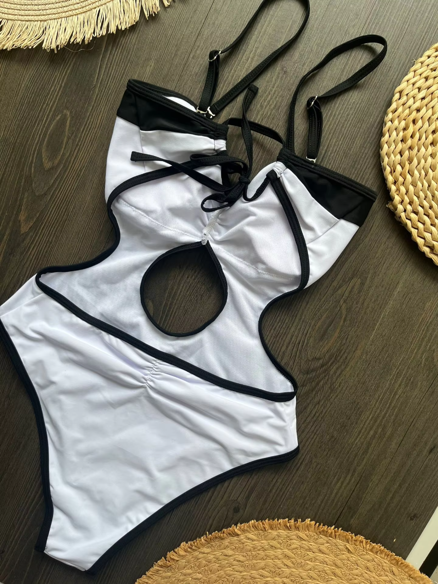 Trend4us Luxe Contrast Trim Cutout One-Piece Swimsuit