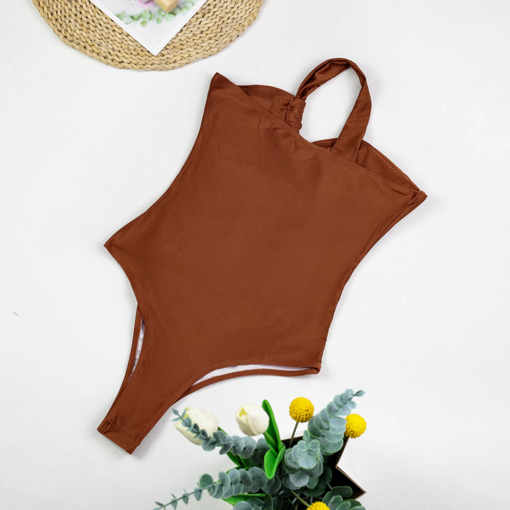 Neckline: One-shoulder with structured cup support