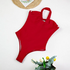 Make waves in the Trend4us Elegant One-Shoulder Ruched Cutout Swimsuit, where timeless sophistication meets modern design. This bold red one-piece features a flattering asymmetric neckline with a supportive single strap and soft, structured cups. The front cutout detail and ruched midsection enhance your silhouette, creating a sculpted, hourglass effect that exudes confidence.