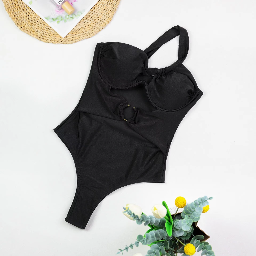 Trend4us Elegant One-Shoulder Ruched Cutout Swimsuit