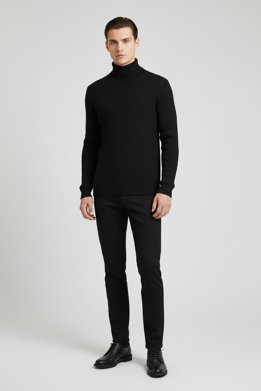 The ribbed turtleneck adds warmth and sophistication, making it ideal for layering under coats or wearing solo for a sleek, minimalist look. Finished with ribbed cuffs and hem for structure and durability, this versatile knit transitions effortlessly from casual outings to smart-casual and evening wear. Available in multiple timeless colors to suit every season.