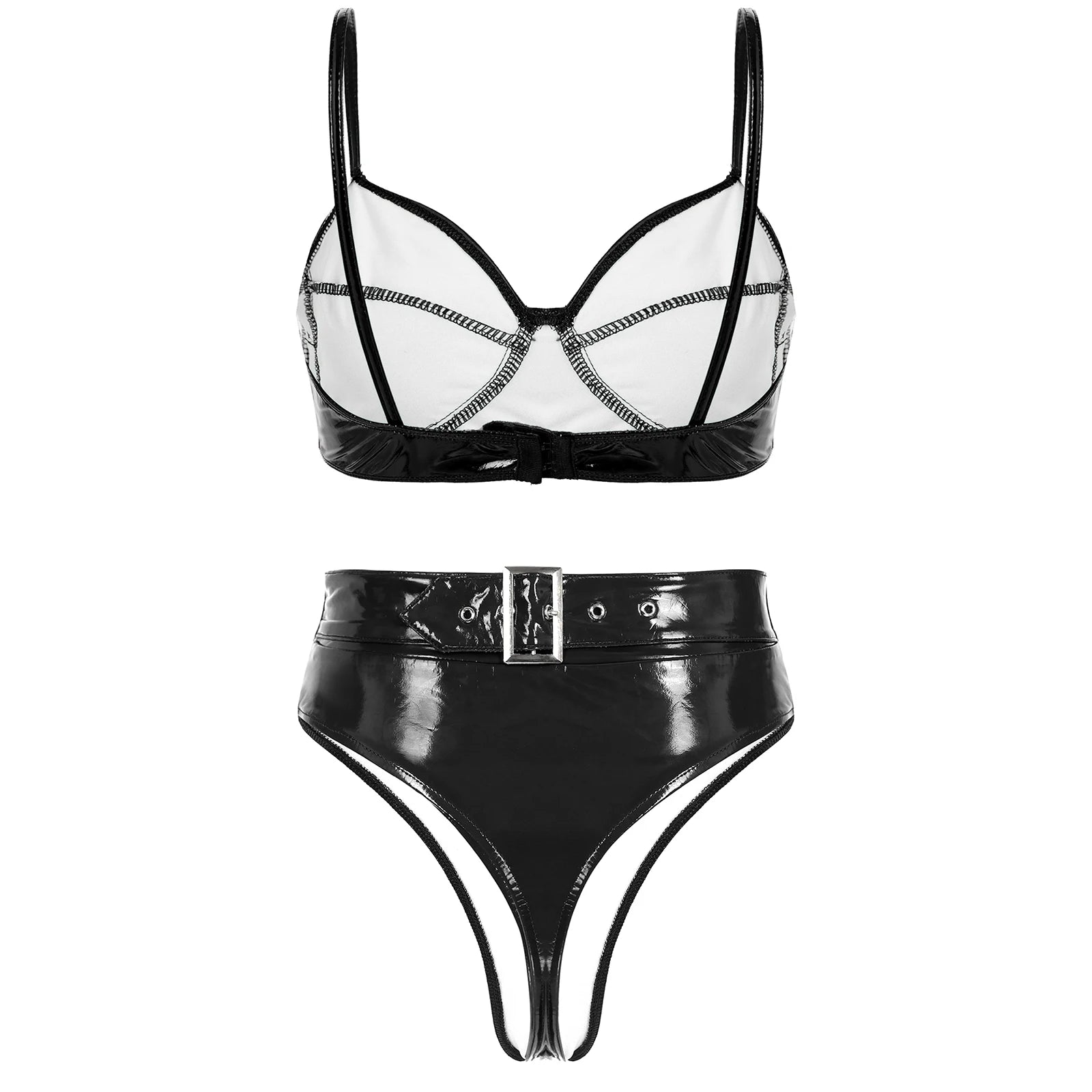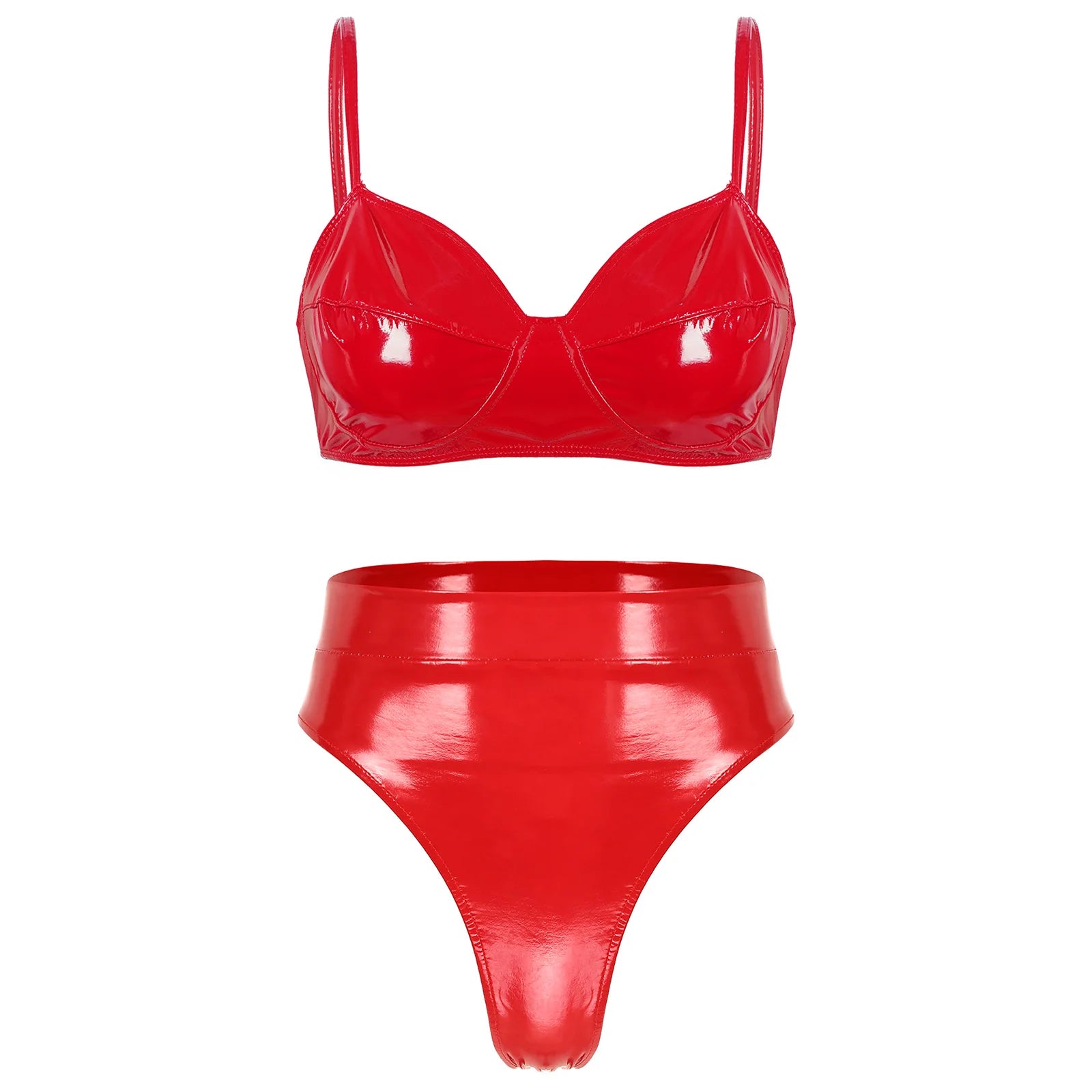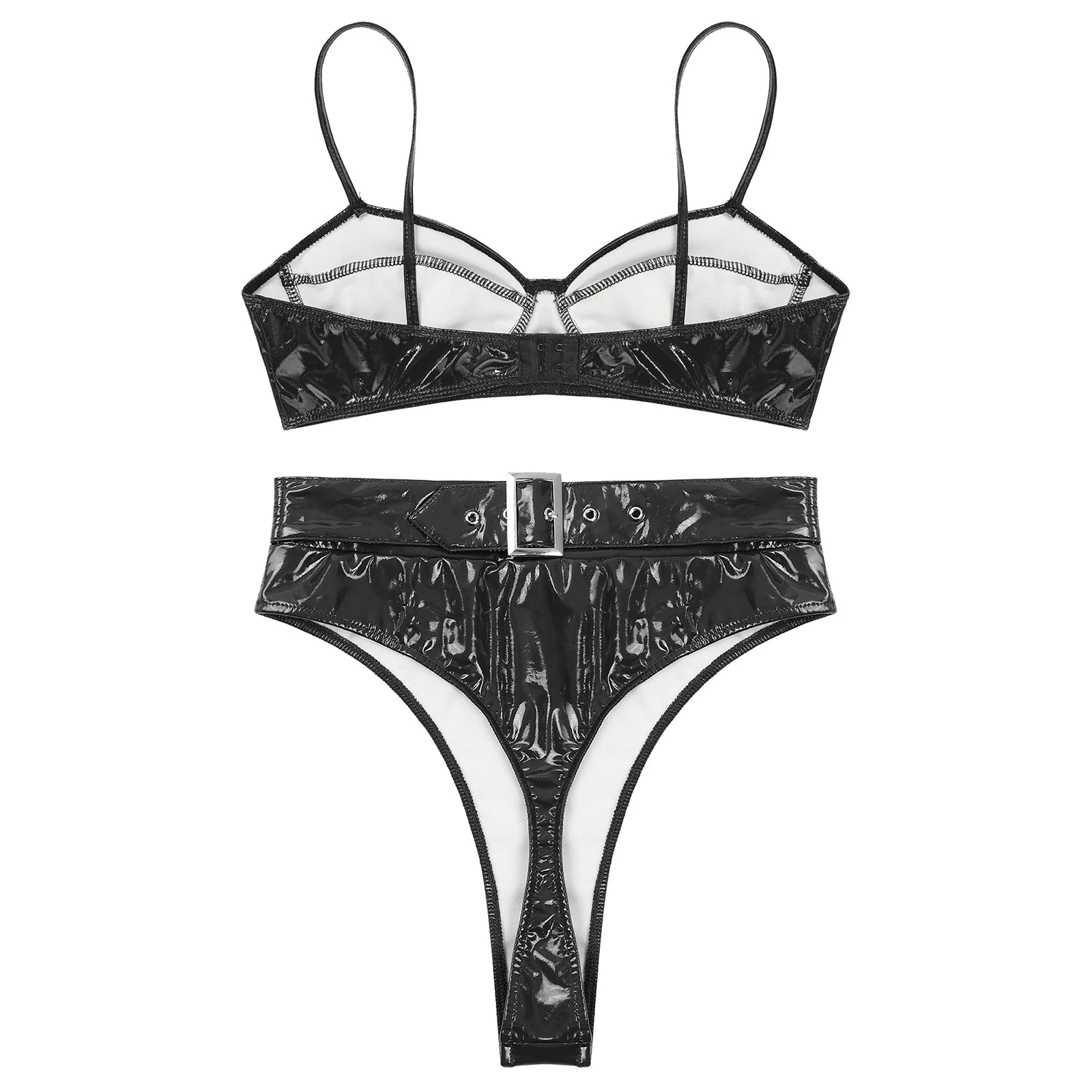 Trend4us Glossy Patent Leather Bra & High-Waisted Thong Set