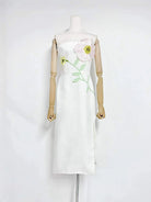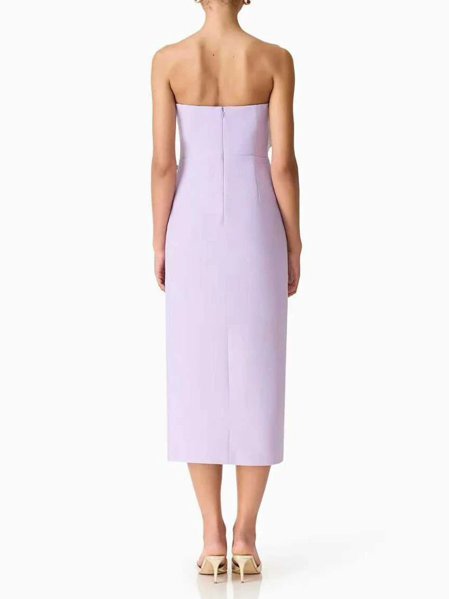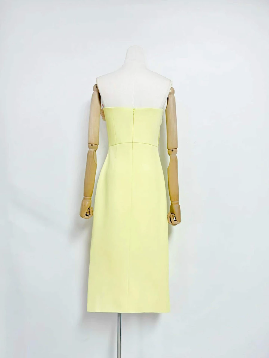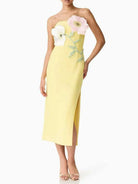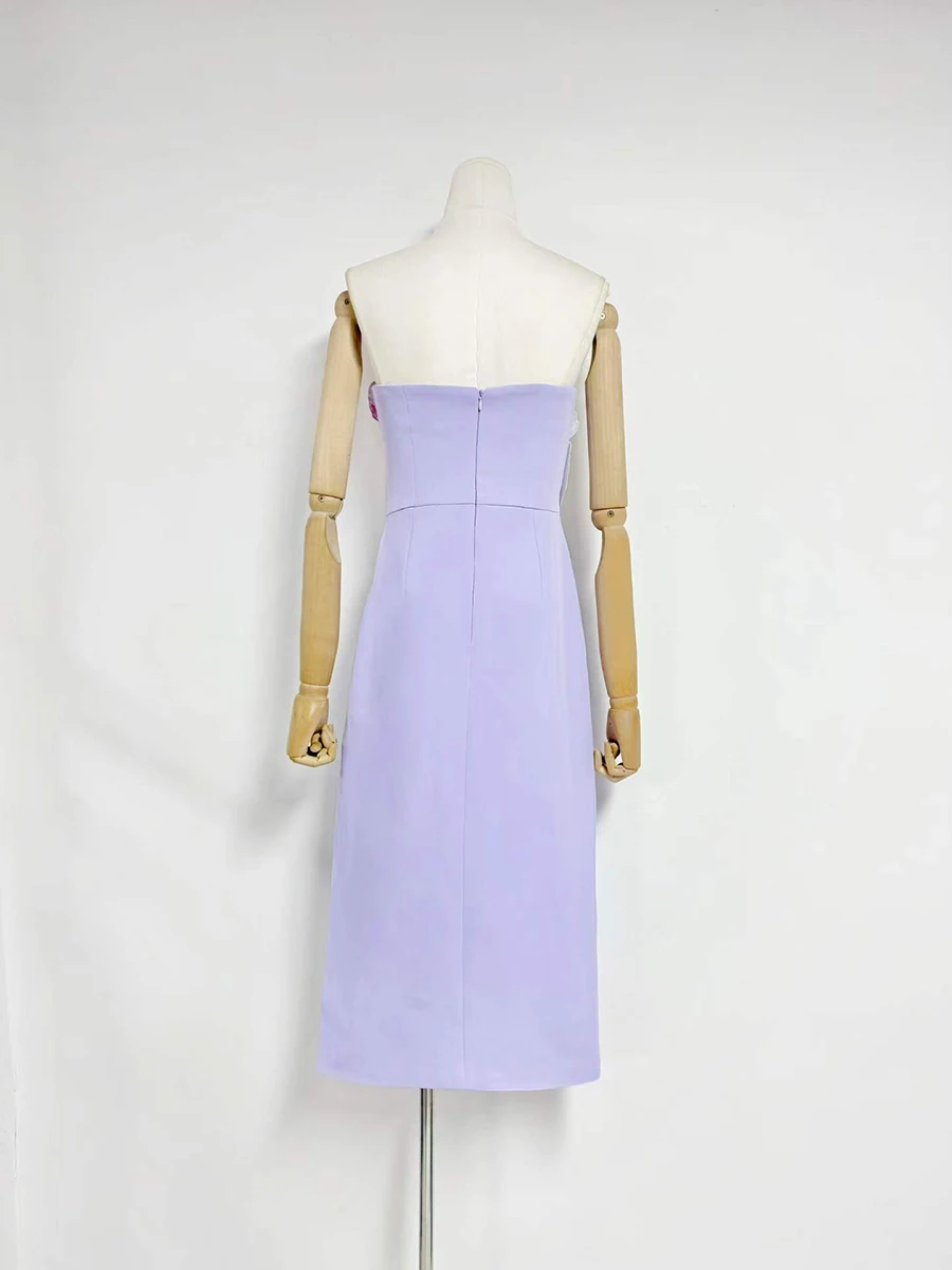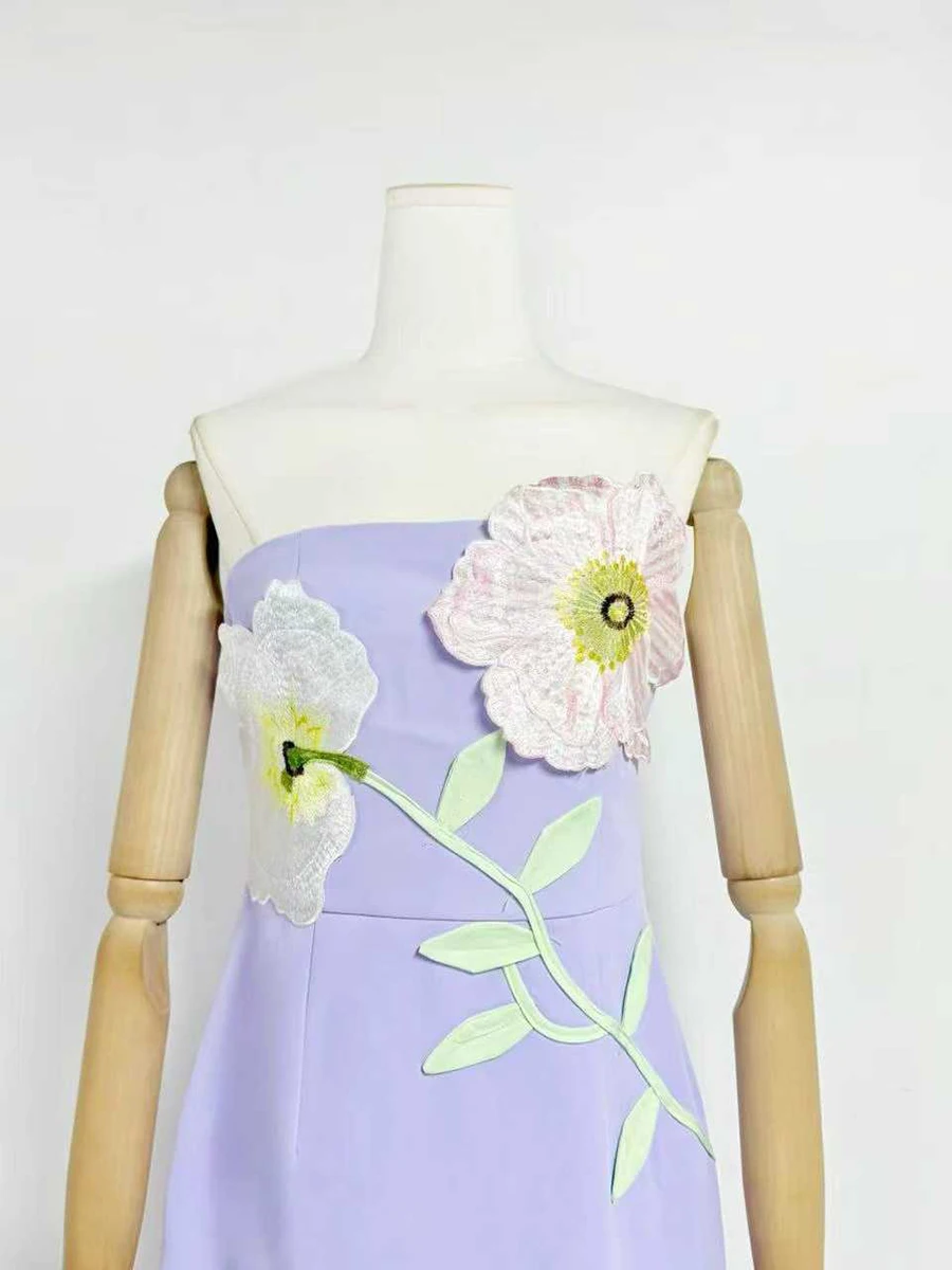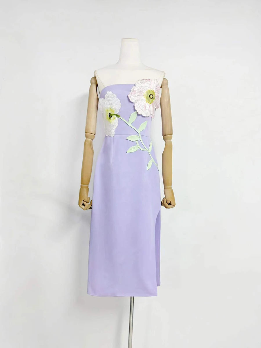 Trend4us Elegant Strapless 3D Floral Appliqué Midi Dress