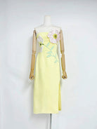 Step into the spotlight with the Elegant Strapless 3D Floral Appliqué Midi Dress. Breathtaking 3D floral appliqués bloom across the structured strapless bodice, creating a look that is romantic, luxurious, and utterly captivating. The A-line silhouette flows gracefully to midi length, while the empire waistline and slight stretch ensure a flattering, comfortable fit that moves beautifully with you.