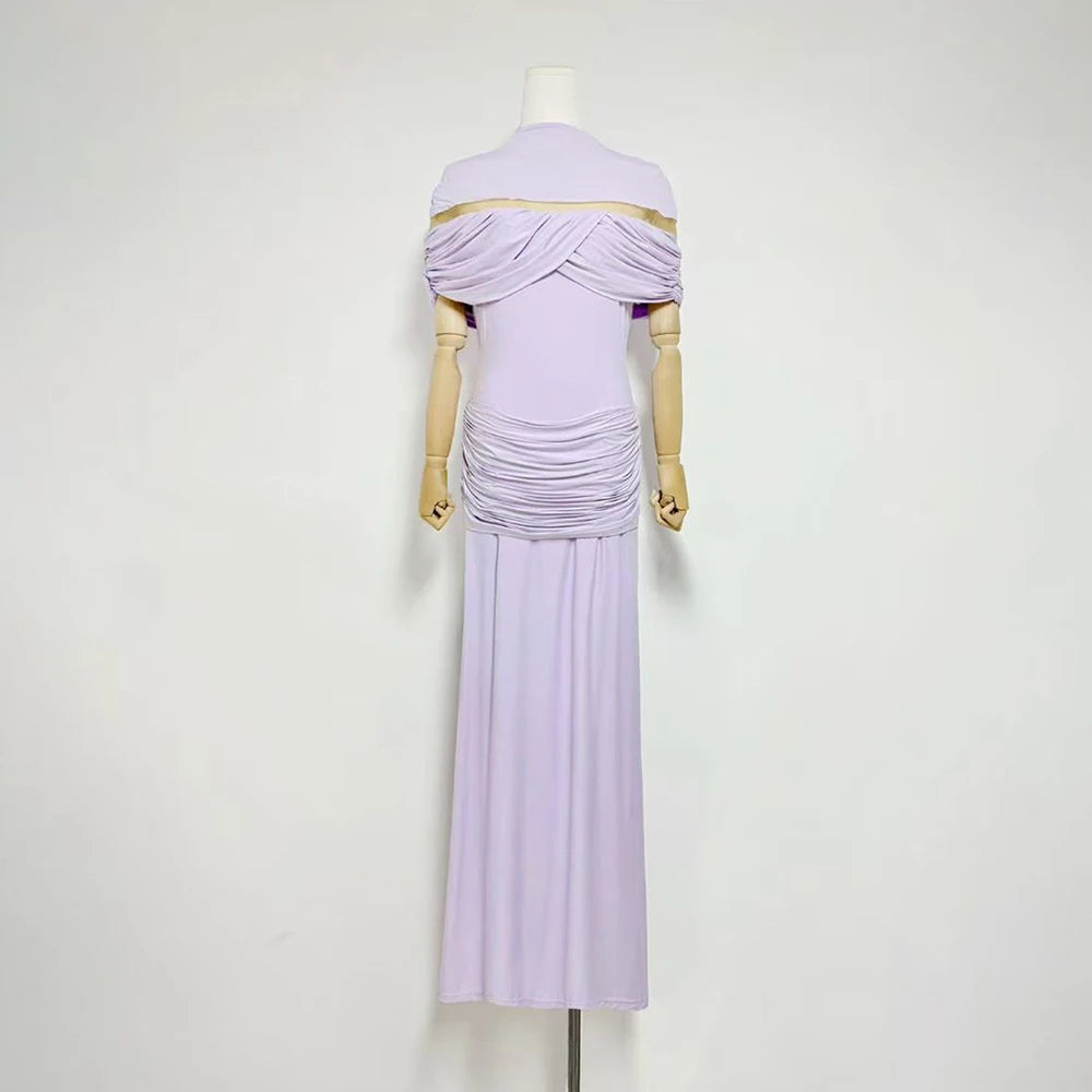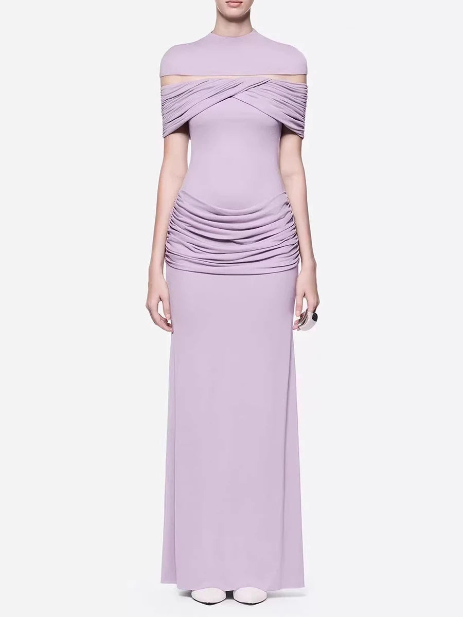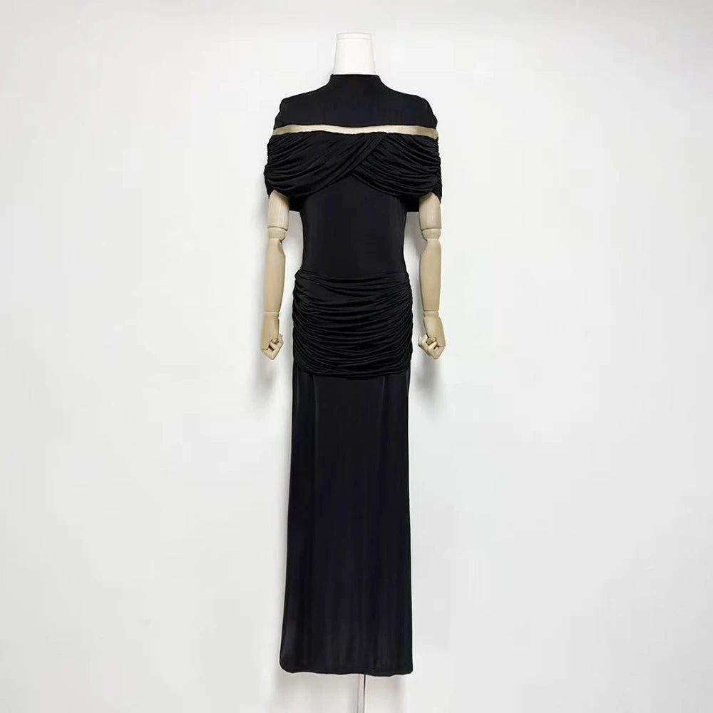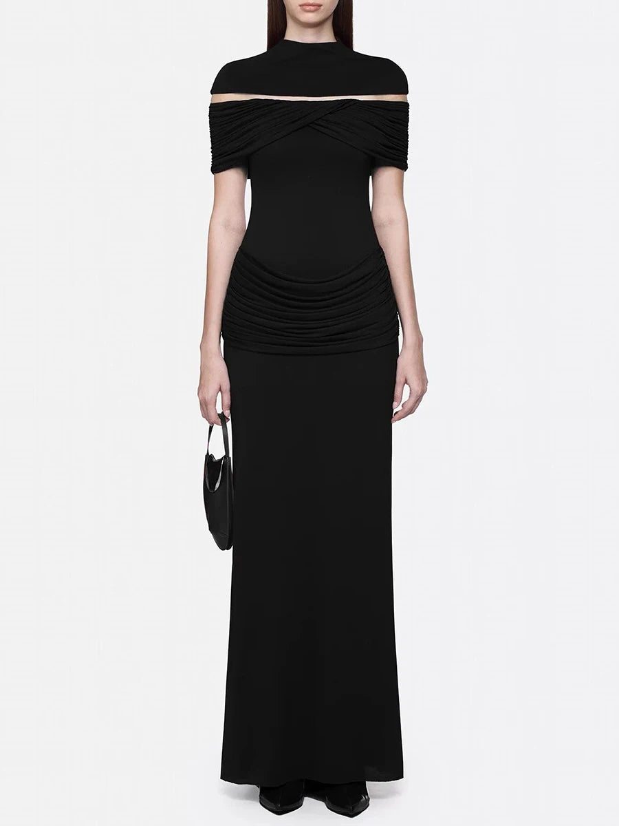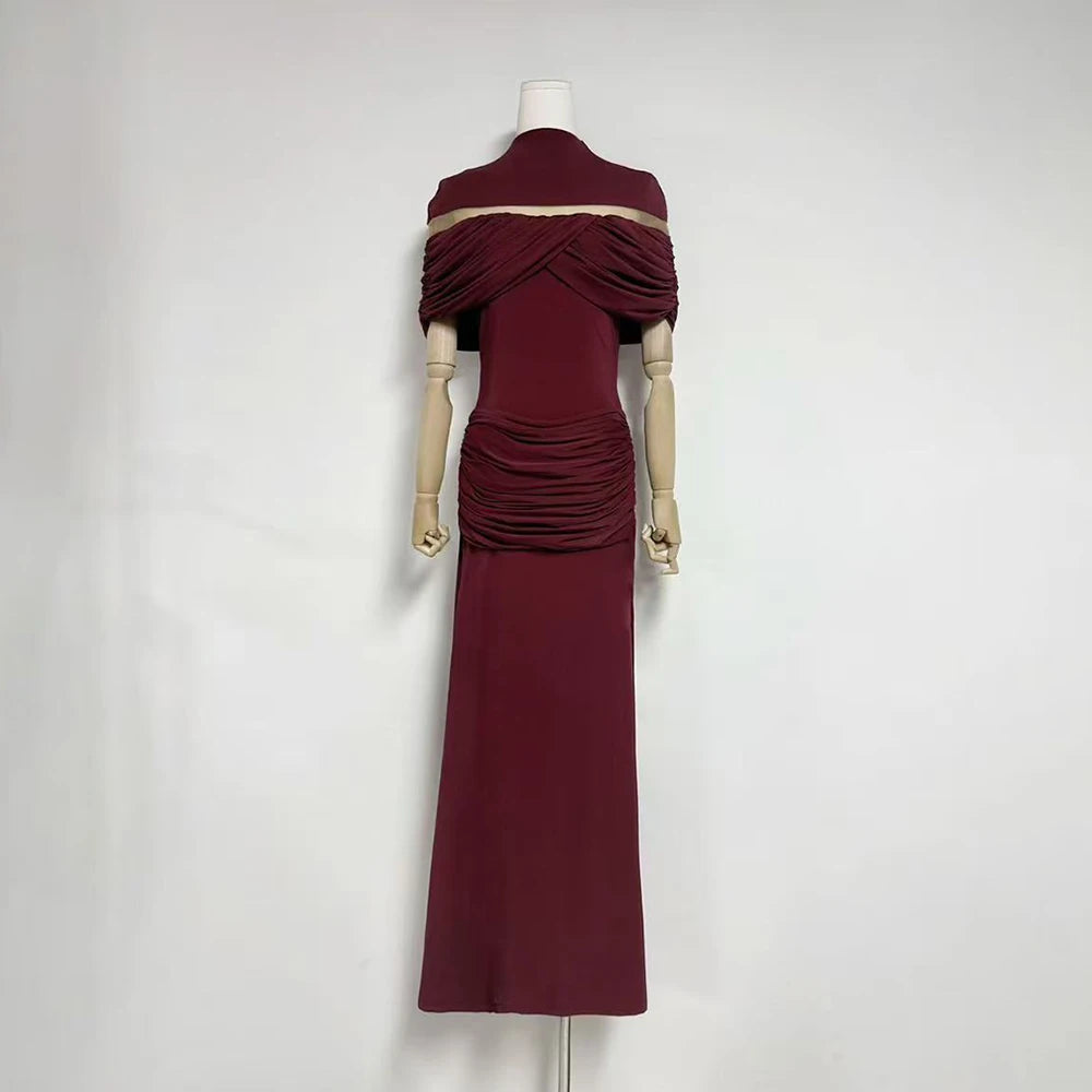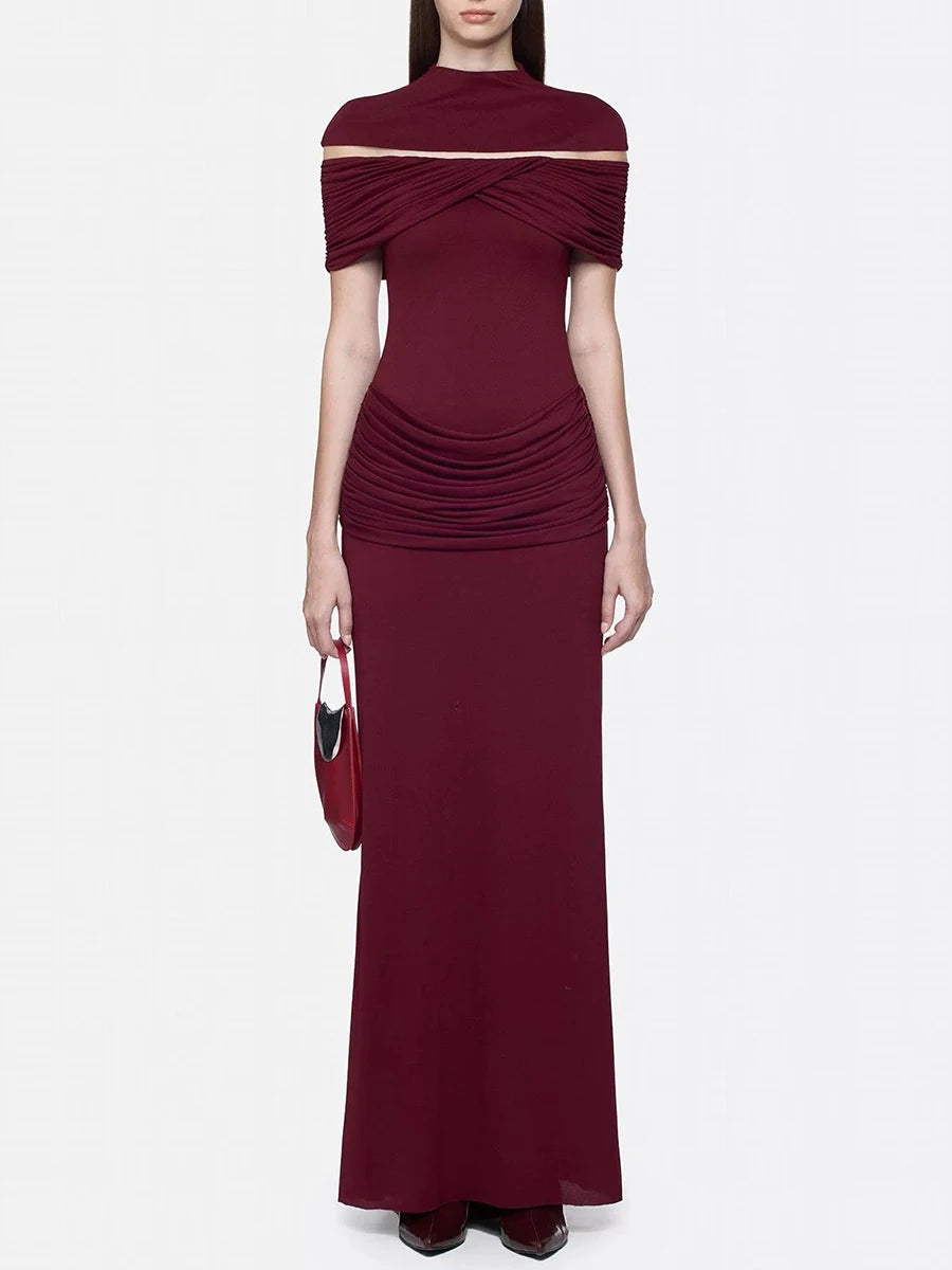 Trend4us Elegant Ruched Evening Maxi Dress